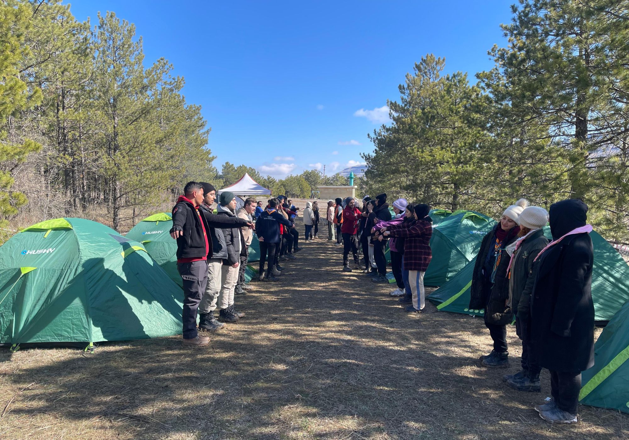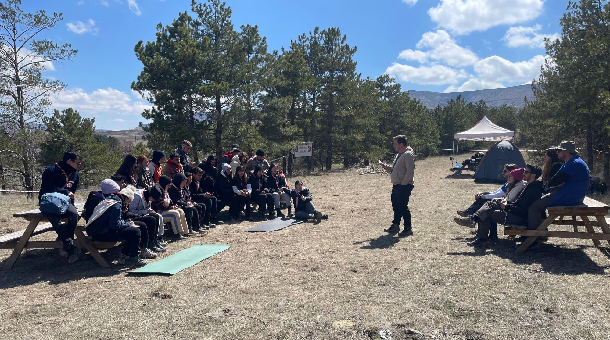 Dönem başından bu yana haftalık eğitim toplantıları düzenleyerek kulüp üyelerinin doğada yaşam, birlik olma, kendine yetebilme gibi konularda gelişmelerinin sahada uygulaması için düzenlenen etkinliğe kulübün akademik danışmanları Öğr. Gör. Mehmet Fatih Tan ve Arş. Gör. Mücahit Işık, 4 lider izci ve 5 takım dahilinde 30 izci olmak üzere toplam 36 kişi katıldı.