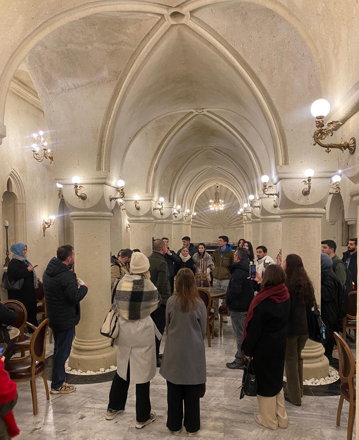 Programın ikinci bölümünde ise Mustafapaşa beldesinde faaliyette bulunan Signature Cave Cappadocia, Trademark Collection by Wyndham oteli ziyaret edildi. Yapı içerisindeki seçili mekânlar incelenerek tasarımın işlevsel ve estetik boyutları değerlendirildi; tamamlanmış bir projede tasarım kararlarının kullanıcı deneyimi ve mekânsal kalite üzerindeki etkileri uygulama örnekleri üzerinden aktarıldı.