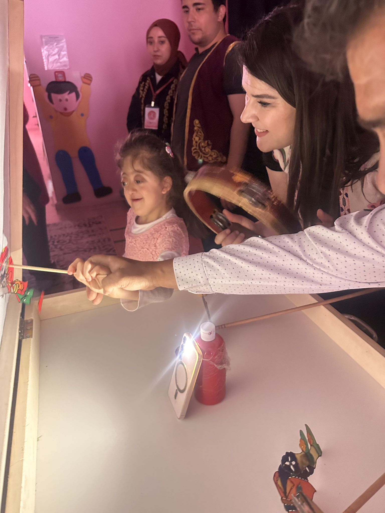 Nevşehir Hacı Bektaş Veli Üniversitesi (NEVÜ) Kapadokya Yaşayan Miras Müzesi tarafından Nevşehir Özel Eğitim Anaokulu’nda bulunan özel öğrencilere yönelik Karagöz gösterisi ve ağaç baskı geleneği icrası gerçekleştirildi.