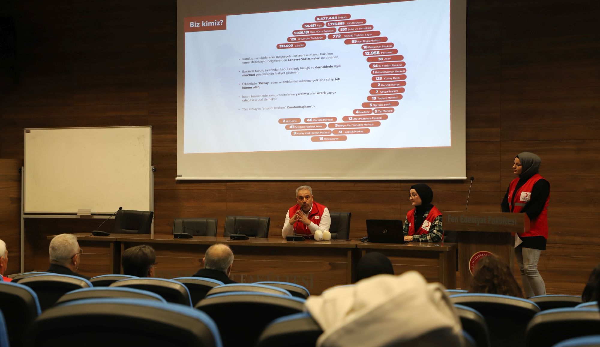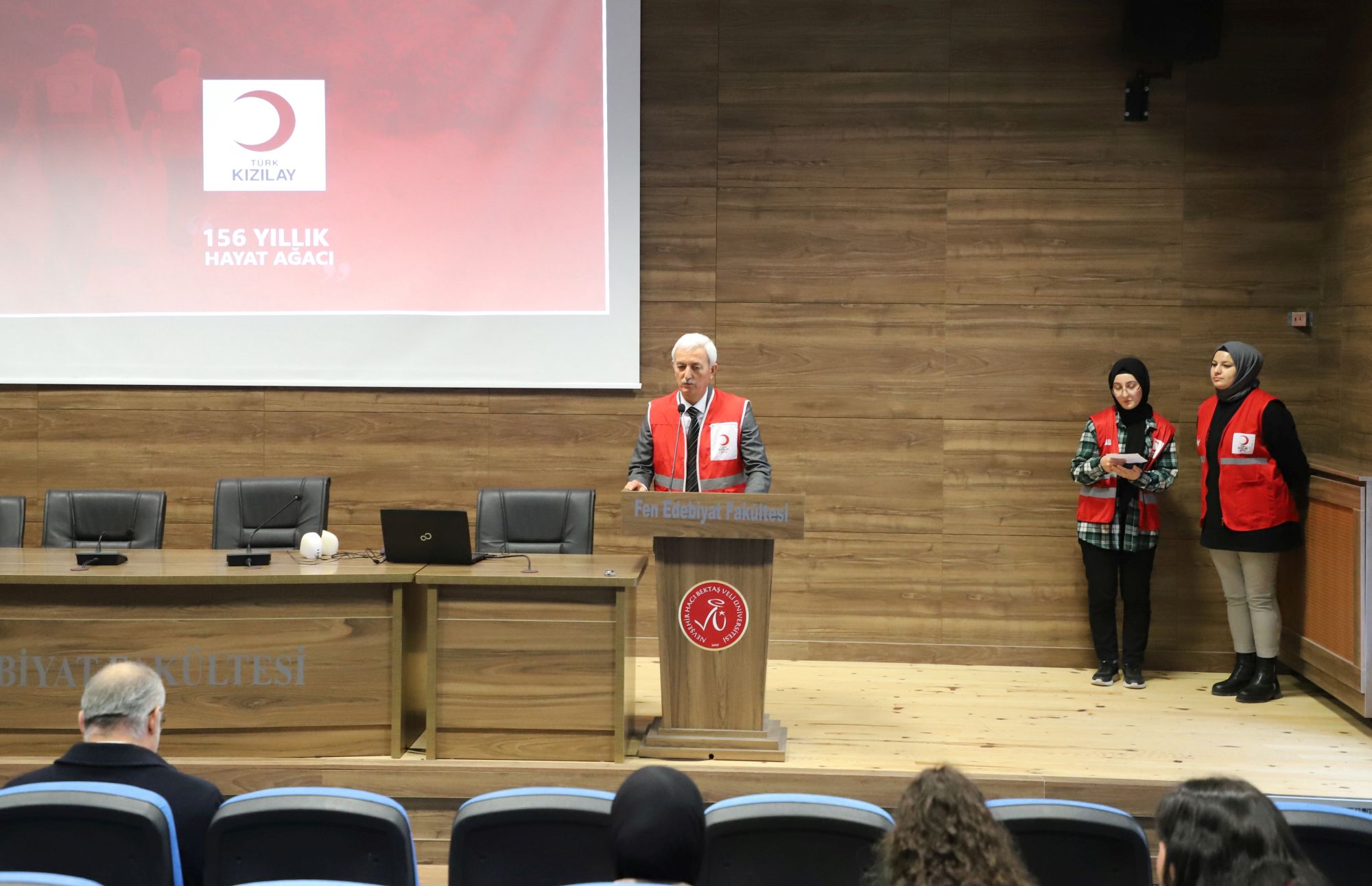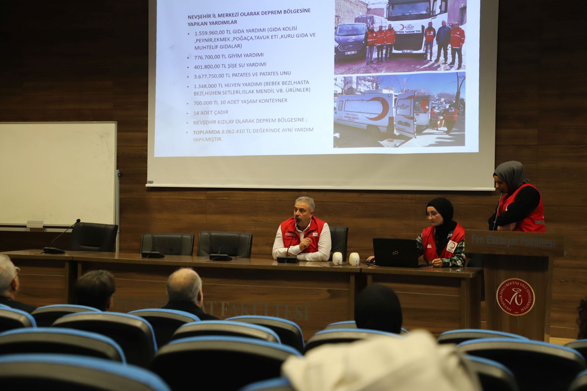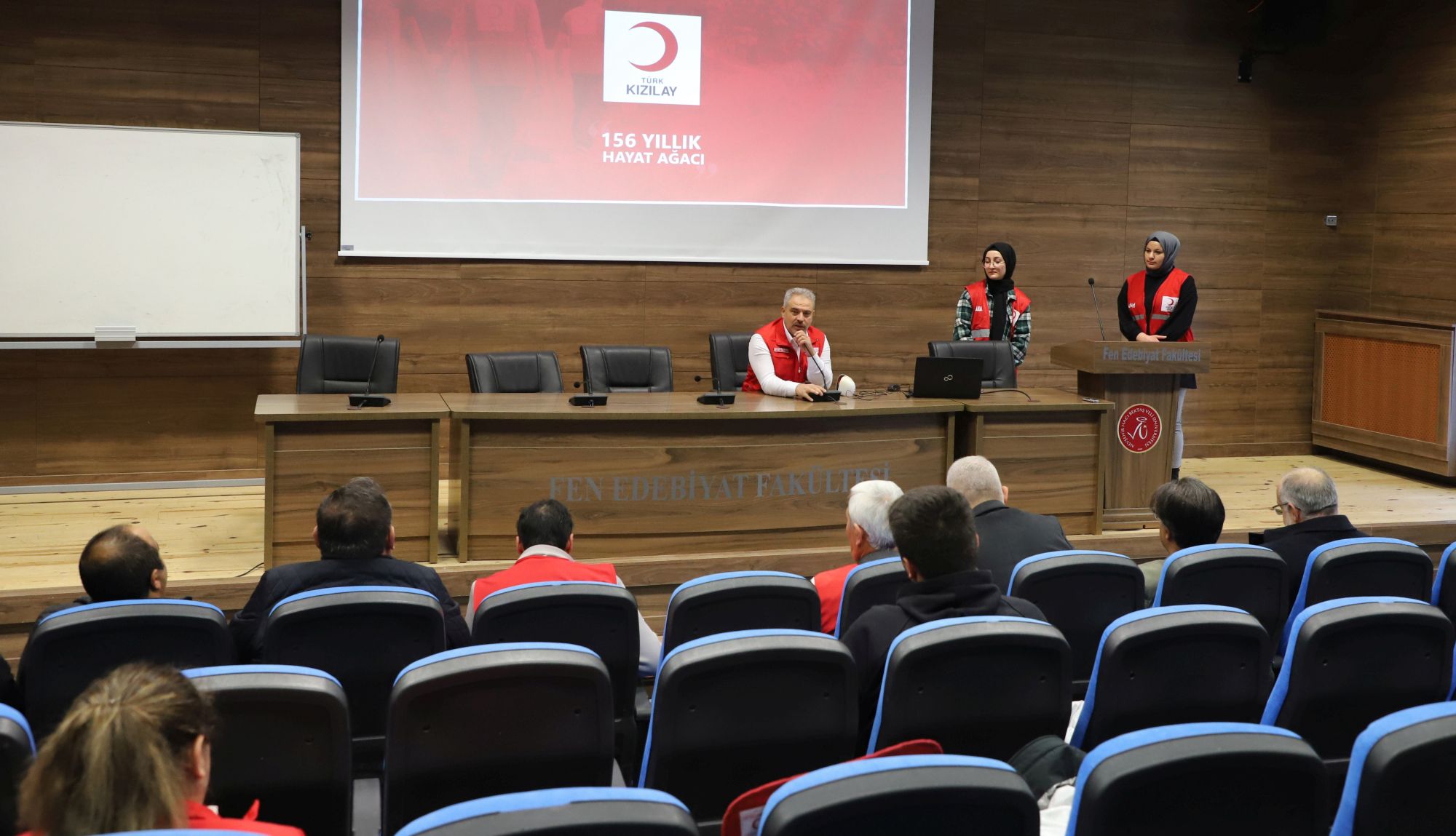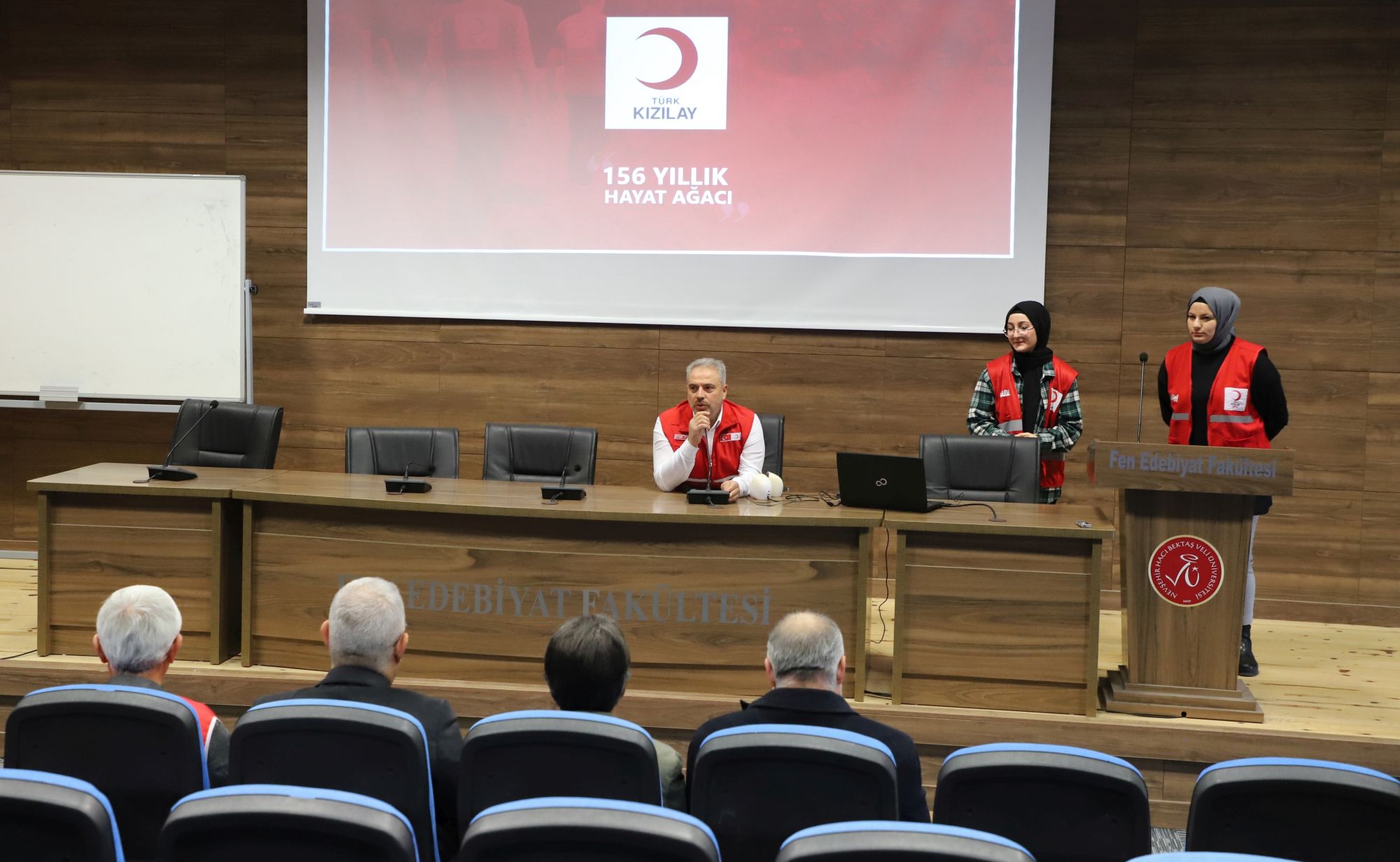 NEVÜ Fen Edebiyat Fakültesi Prof. Dr. Zeynep Korkmaz Konferans Salonu’nda gerçekleştirilen bilgilendirme toplantısına; Rektör Yardımcısı Prof. Dr. Mutluhan Akın, Fen Edebiyat Fakültesi Dekanı Prof. Dr. Ensar Çetin, Kızılay İl Başkanı Ercan Civelek, Rektör Danışmanı Prof. Dr. Adem Çatak, NEVÜ Kızılay Kulübü Akademik Danışmanı Doç. Dr. Hasan Yavuzer, Kızılay İl Başkan Yardımcısı Orhan Us, Sağlık Kültür ve Spor Daire Başkanlığı’ndan Kültür Hizmetleri Müdürü Yavuz Serin, Yemekhane ve Tesis Sorumlusu Müdürü Abdurrahman Şeker, NEVÜ Kızılay Üniversite Başkanı Fatma Nur Kılıç, akademik ve idari personel ile öğrenciler katıldı.