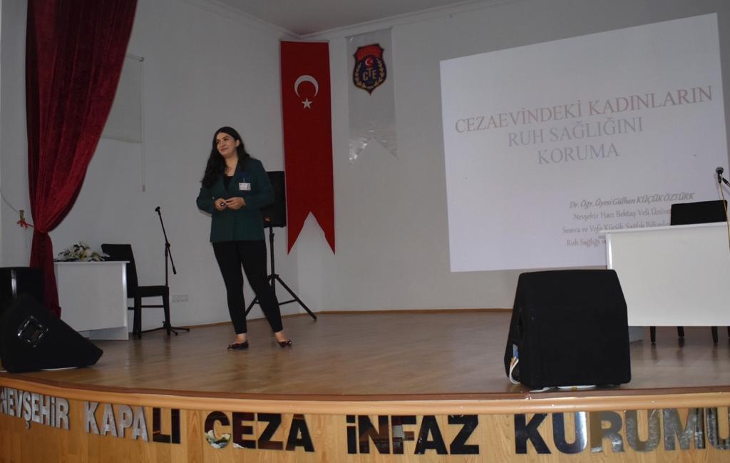 Nevşehir E Tipi Kapalı Ceza İnfaz Kurumu’nda, Nevşehir Hacı Bektaş Veli Üniversitesi Kadın Çalışmaları Uygulama ve Araştırma Merkezi (NÜKÇAM) iş birliğiyle hükümlü ve tutuklu kadınlara yönelik “Kadınların Ruh Sağlığının Korunması” konulu konferans düzenlendi.
