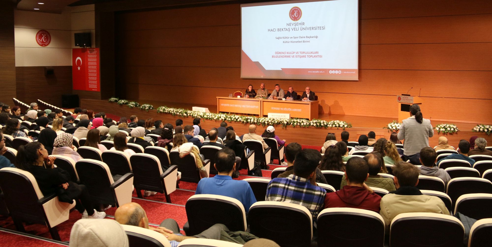 Nevşehir Hacı Bektaş Veli Üniversitesi (NEVÜ) Sağlık Kültür ve Spor Daire Başkanlığı bünyesinde faaliyet gösteren öğrenci kulüp ve topluluklarına yönelik, bilgilendirme ve istişare toplantısı yapıldı.