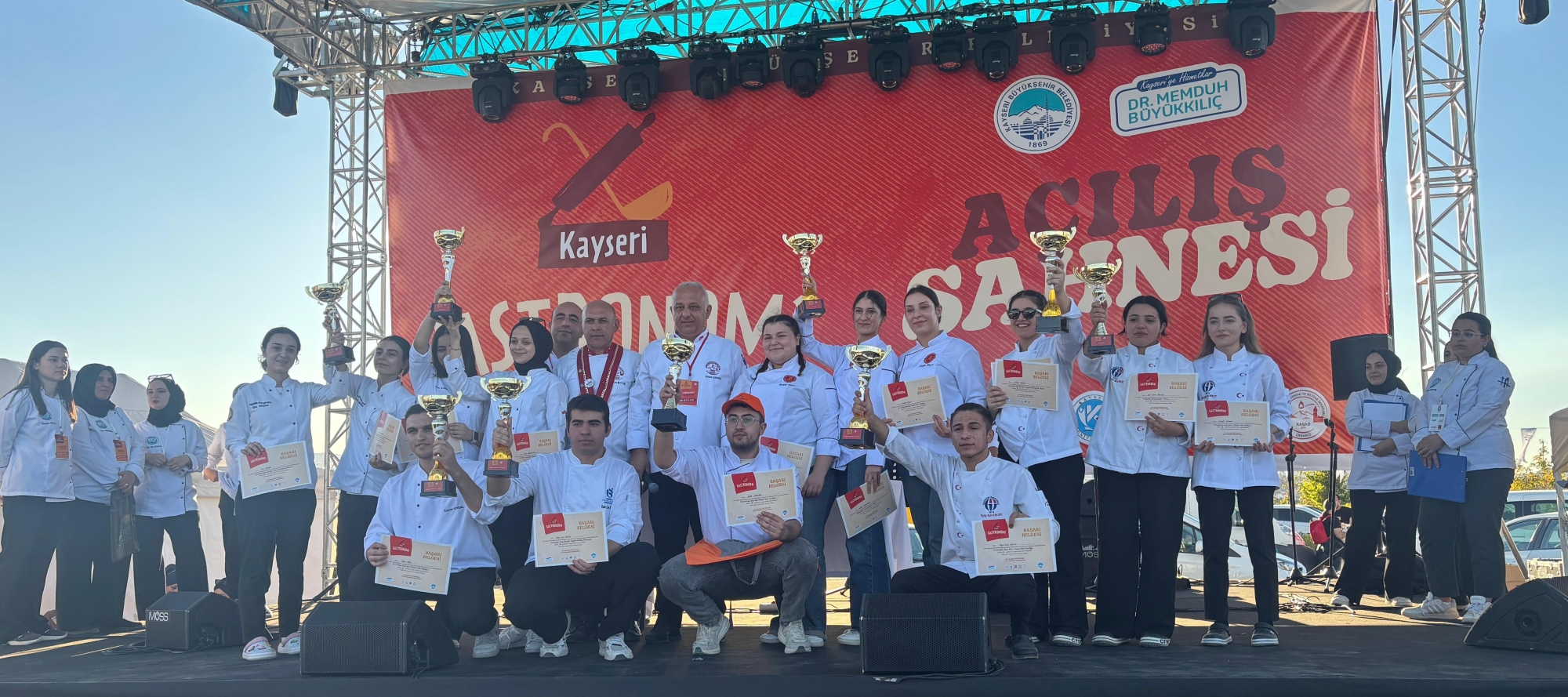 Nevşehir Hacı Bektaş Veli Üniversitesi (NEVÜ) Turizm Fakültesi Gastronomi ve Mutfak Sanatları Bölüm öğrencileri, ‘2. Kayseri Gastronomi Günleri” kapsamında düzenlenen yemek yarışmasından ikincilik ve üçüncülükle döndü.
