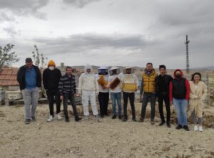 Nevşehir Hacı Bektaş Veli Üniversitesi (NEVÜ) Avanos Güzel Sanatlar Meslek Yüksekokulu (MYO) Bitkisel ve Hayvansal Üretim Bölümü Organik Tarım Programı 2. sınıf öğrencilerine yönelik ‘Arıcılık ve Polinizasyon’ dersi kapsamında, Nevşehir ili Ürgüp İlçesi Sarıyazı mevkiinde ders sorumlusu Öğr. Gör. Durmuş Ok gözetiminde uygulamalı arazi çalışması gerçekleştirildi.