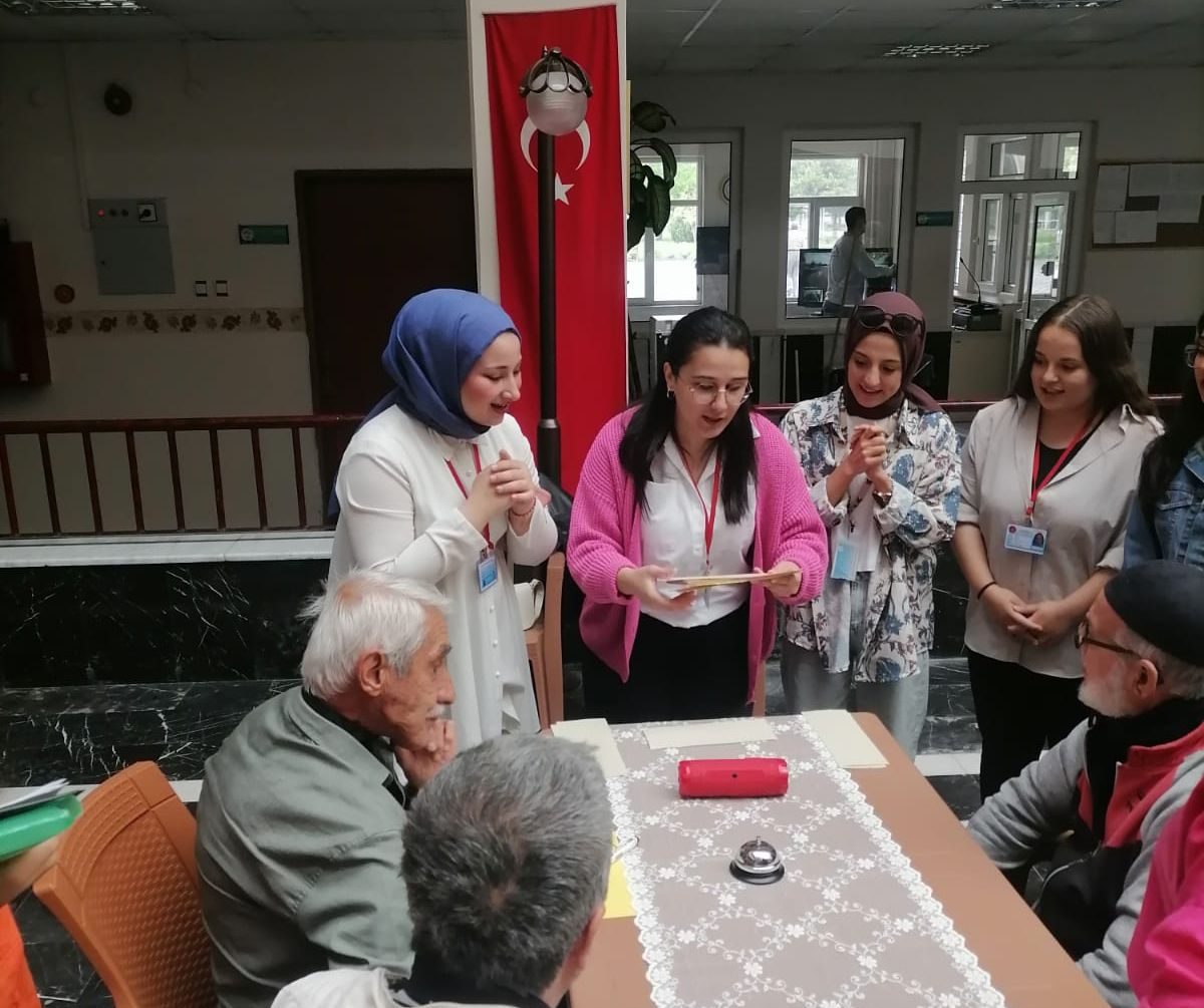 NEVÜ öğrencileri, Yaşlı Bakım İlke ve Uygulamaları dersi kapsamında ve Öğr. Gör. Kevser Çağla Gurlaş koordinesinde Kayseri Hacı Rukiye Gazioğlu Huzurevi’ni ziyaret etti. Huzurevi sakinleriyle yakından ilgilenen öğrenciler huzurevi sakinlerinin hafızalarını güçlendirme, el koordinasyonunu geliştirme ve beş duyu organlarını daha sağlıklı kullanmaları amacıyla bilgi yarışması, bil bakalım, çiçek dikme ve saksı boyama, pinpon topu atma gibi çeşitli etkinlikler gerçekleştirdi.