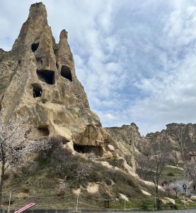 Kapadokya Tarihi Dersi bu hafta Kapadokya bölgesinin incisi olan Göreme Açık Hava Müzesi’nde işlendi. Fen Edebiyat Fakültesi Tarih Bölümü Eskiçağ Tarihi Anabilim Dalı’nda görev yapan Doç. Dr. Hasan Tuncer sorumluluğunda yapılan derste öğrenciler Göreme Açık Hava Müzesi’nin, bölgenin tarihi ve kültürel önemi hakkında bilgilendirildi. Kaya yerleşim yeri olup, içerisinde kiliseler, şapeller, yemekhaneler ve oturma mekânlarının bulunduğunu belirten Tuncer, Göreme Açık hava Müzesi’nin 1985 yılından bu yana doğal ve kültürel varlık olarak UNESCO’nun Dünya Mirası Listesi’nde yer aldığını söyledi.
