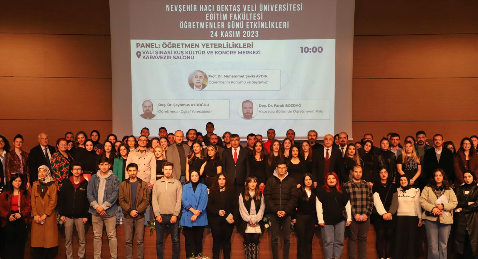 Nevşehir Hacı Bektaş Veli Üniversitesi (NEVÜ) Eğitim Fakültesi “24 Kasım Öğretmenler Günü” kutlama etkinlikleri kapsamında öğrencilerin sahne aldığı şiir dinletisi, koro ve skeç gösterilerinden oluşan program düzenledi.