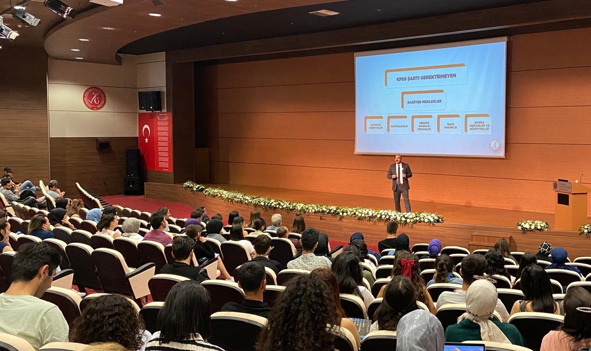 NEVÜ Vali Şinasi Kuş Kültür ve Kongre Merkezi Kara vezir Salonu’nda İktisadi ve İdari Bilimler Fakültesi (İİBF) öğrencilerine yönelik düzenlenen seminere konuşmacı olarak katılan Ankara Monopol Eğitim Kurumu Müdürü Mustafa Mert, KPSS-A sınavına nasıl hazırlanılması gerektiği, başarılı bir kariyer planlamasının nasıl yapılacağı ve sınavda dikkat edilmesi gereken hususlar konusunda bilgilendirme yaptı.