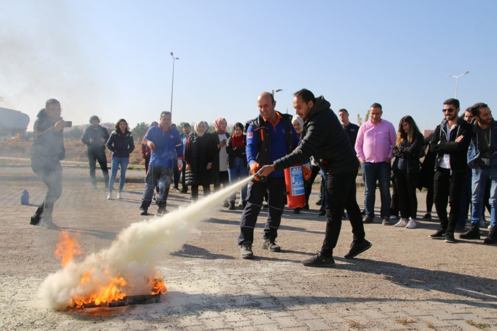 Yangın müdahale eğitiminde yangın söndürücü tüpler ile uygulama yapan öğrenciler de, bu tür eğitimlerin sürekli olarak belirli periyotlarda uygulamalı olarak düzenlenmesinin kendileri açısından büyük önem arz ettiğini ifade ettiler.