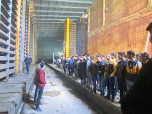 Hacıbektaş Teknik Bilimler Meslek Yüksekokulu’ndan Müdür Yardımcısı Öğr. Gör. Halil Çelik, Öğr. Gör. Ensar Koşatepe ve Mühendislik-Mimarlık Fakültesi’nden Dr. Öğr. Üyesi Göksel Gökkuş’un koordinatörlüğünde, Hacıbektaş Teknik Bilimler Meslek Yüksekokulu Müdür V. Öğr. Gör. Dr. Gökhan Keven ve Müdür Yardımcısı Öğr. Gör. Alper Görgün’ün katılımları ile BlokBims Entegre Tesislerine öğrencilerle birlikte teknik gezi düzenlendi. Öğrencilerin mezun olduktan sonra iş hayatlarında faydalı olacağı amaçlanarak tesiste bulunan güneş enerji santrali ile BlokBims Entegre Tesisleri bünyesinde çıkarılan ponza taşının ocaktan çıkartılmasından üretim aşamasına kadar geçirdiği evrelerin neler olduğu yerinde inceleyerek yetkililerden bilgiler alındı.. BlokBims Entegre Tesislerinde tam otomatik makinaları ile 300.000 adet/gün kapasiteyle üretilen hafif yapı elemanları, Endüstri 4.0 teknolojiye sahip robotlar tarafından üretilmekte ve stoklanmaktadır. Ayrıca tesiste kurulu olan 3.000 kWh güneş enerjisi santrali ile kendi elektriğini kendisi üretmektedir.