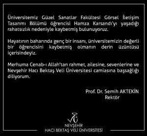 Hayatının baharında genç bir insanı, üniversitemizin değerli bir öğrencisini kaybetmiş olmanın derin üzüntüsü içerisindeyiz.