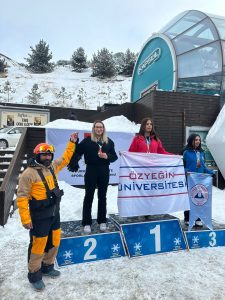 Şampiyonaya NEVÜ’yü temsilen takım sorumlusu Dr. Öğr. Üyesi Osman Dişçeken ve Antrenör Sait Güneş koordinesinde katılan NEVÜ Spor Bilimleri Fakültesi Antrenörlük Eğitimi Bölümü 1. sınıf öğrencisi Miray Özsoy, “Snowboard Slalom” ve “Büyük Slalom” kategorilerinde mücadele ederek elde ettiği toplam puanlarla Türkiye ikincisi oldu ve gümüş madalya kazandı.