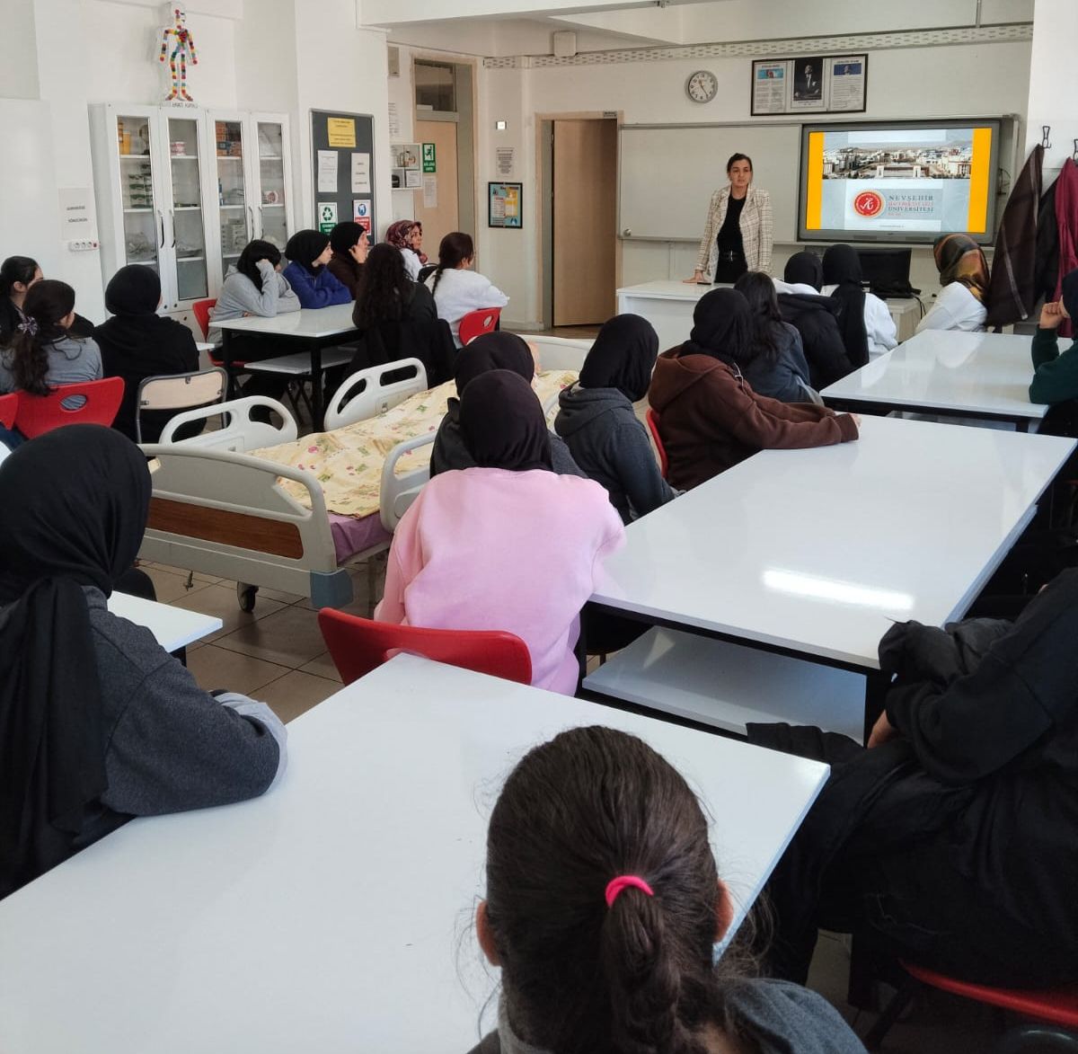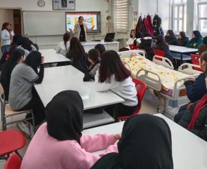 Nevşehir Hacı Bektaş Veli Üniversitesi (NEVÜ) Sağlık Hizmetleri Meslek Yüksekokulu (SHMYO) Öğretim Görevlisi Dr. Kevser Çağla Gurlaş, Nene Hatun Kız Mesleki ve Teknik Anadolu Lisesi Hasta ve Yaşlı Hizmetleri Bölümü öğrencilerine yönelik “Yaşlı Bakım Alanında Kariyer Olanakları” konulu eğitim verdi.