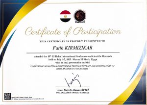NEVÜ Bitkisel ve Hayvansal Üretim Bölümü öğretim üyesi Doç. Dr. Cevahir Altınkaynak danışmanlığında yürütülen proje ayrıca 2-7 Temmuz 2025 tarihleri arasında Mısır’ın Sharm El Sheikh kentinde düzenlenen El Ruha 13. Uluslararası Bilimsel Araştırma Konferansı’nda kabul edilerek sunuldu ve bilim dünyasıyla paylaşıldı.