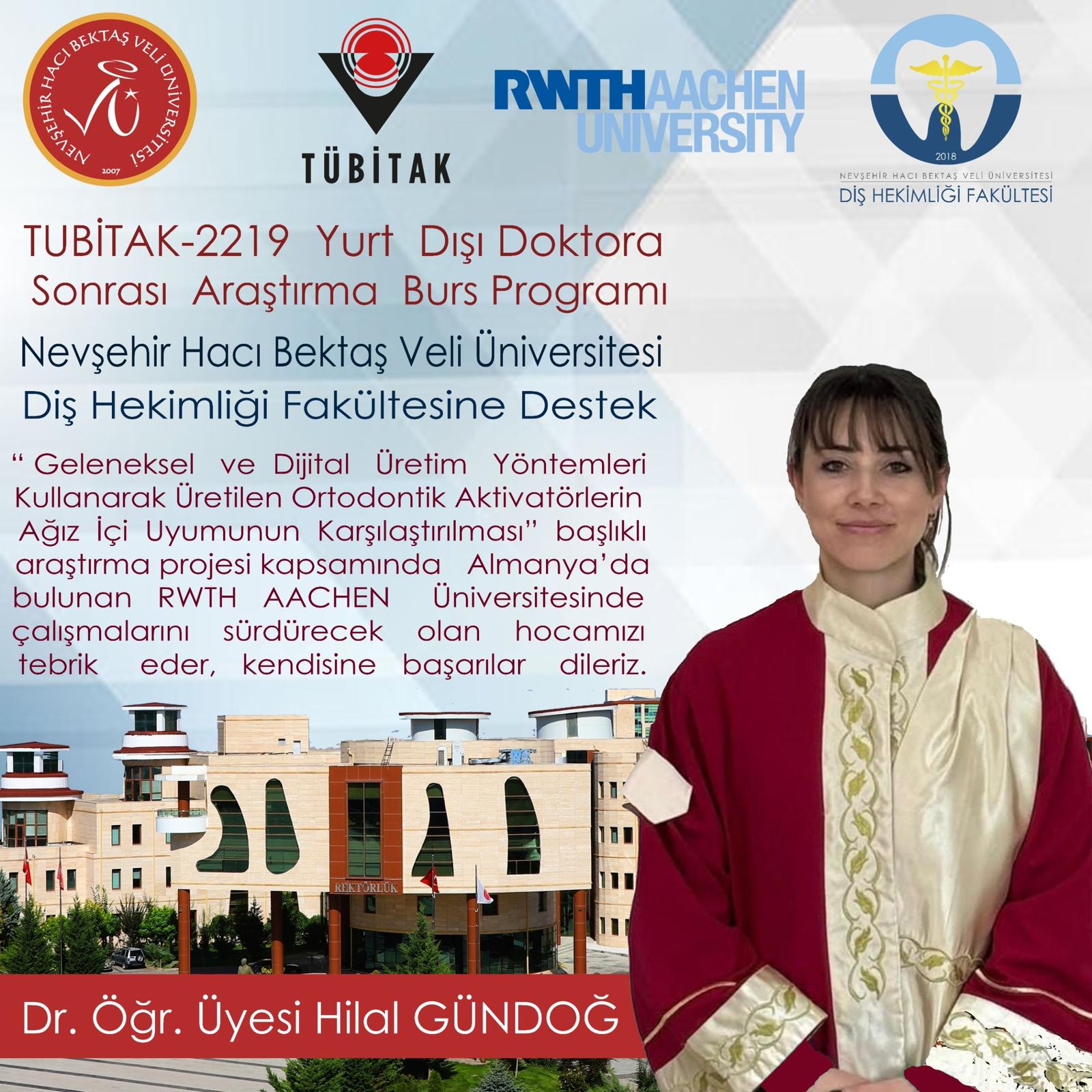 Nevşehir Hacı Bektaş Veli Üniversitesi (NEVÜ) Diş Hekimliği Fakültesi Ortodonti Anabilim Dalı öğretim üyesi Dr. Öğr. Üyesi Hilal Gündoğ, Türkiye Bilimsel ve Teknolojik Araştırma Kurumu (TÜBİTAK) tarafından yürütülen 2219 Yurt Dışı Doktora Sonrası Araştırma Burs Programı kapsamında destek almaya hak kazandı.