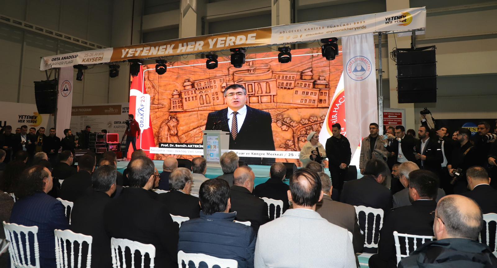Fuarın düzenlenmesinde katkıları bulunan paydaş Üniversite Rektörlerine, Kayseri Valiliği ve Kayseri Büyükşehir Belediyesi’ne, fuarın düzenlenmesinde emeği geçen herkese teşekkür eden Erciyes Üniversitesi Rektörü Prof. Dr. Fatih Altun, ise “Üniversitemiz bu günlerde adından daha çok söz ettiriyorsa ben bunu tamamen Kayseri protokolüne ve Kayseri sanayisine borçlu olduğumuzu düşünüyorum. Bu nedenle 150’den fazla firmaya sağlamış oldukları destekten dolayı teşekkür ediyor, yaklaşık 20 bin öğrencinin katılım göstermesinin beklendiği bu fuarın ülkemize güzel sonuçlar doğurmasını temenni ediyorum” diye konuştu.