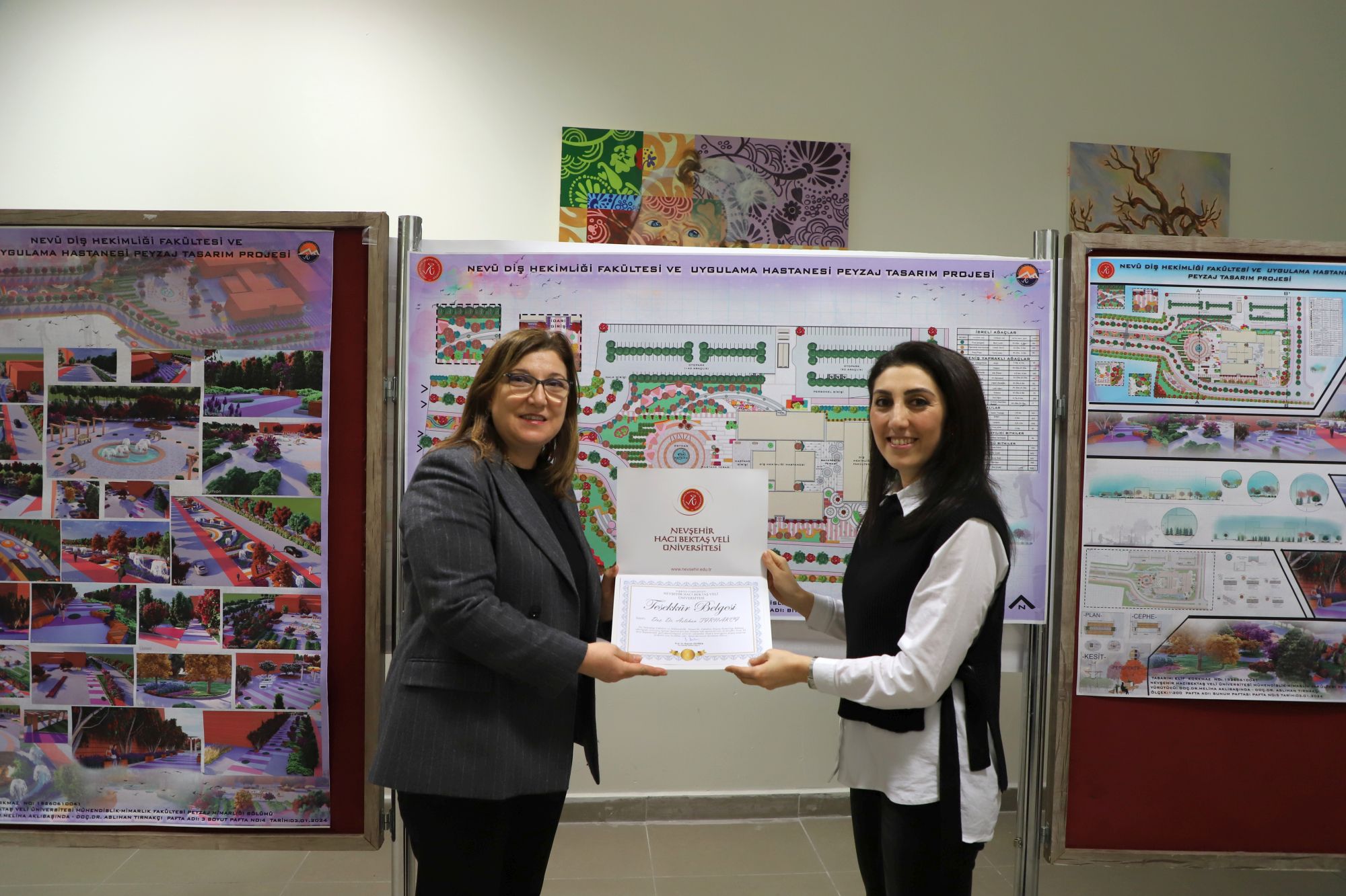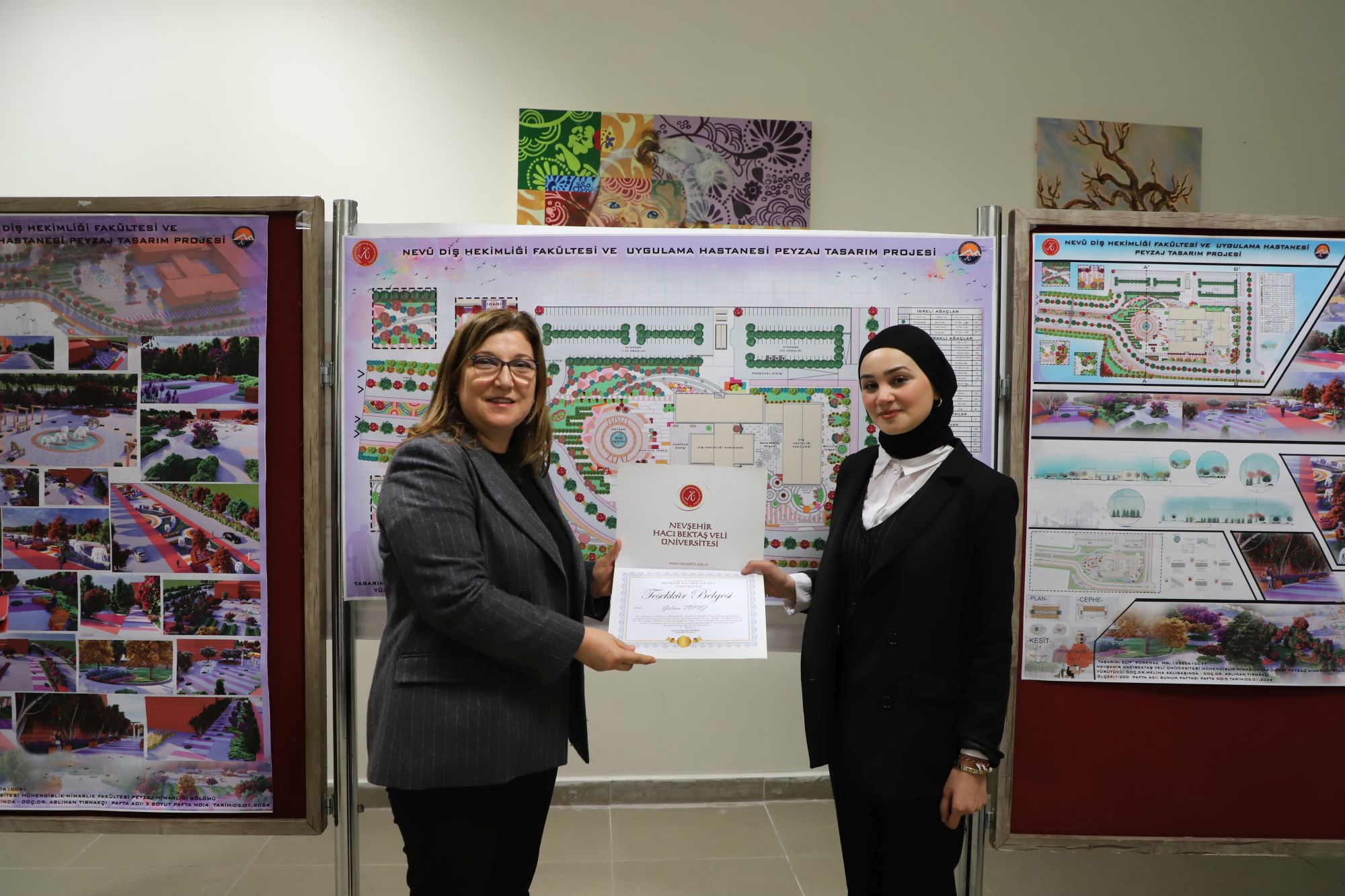 Nevşehir Hacı Bektaş Veli Üniversitesi (NEVÜ) Mühendislik-Mimarlık Fakültesi Peyzaj Mimarlığı Bölümü 3. sınıf öğrencilerinin ‘Proje III Dersi’ kapsamında hazırladıkları Diş Hekimliği Fakültesi ve Uygulama Hastanesi alanı peyzaj çalışmaları ödüle layık görüldü.