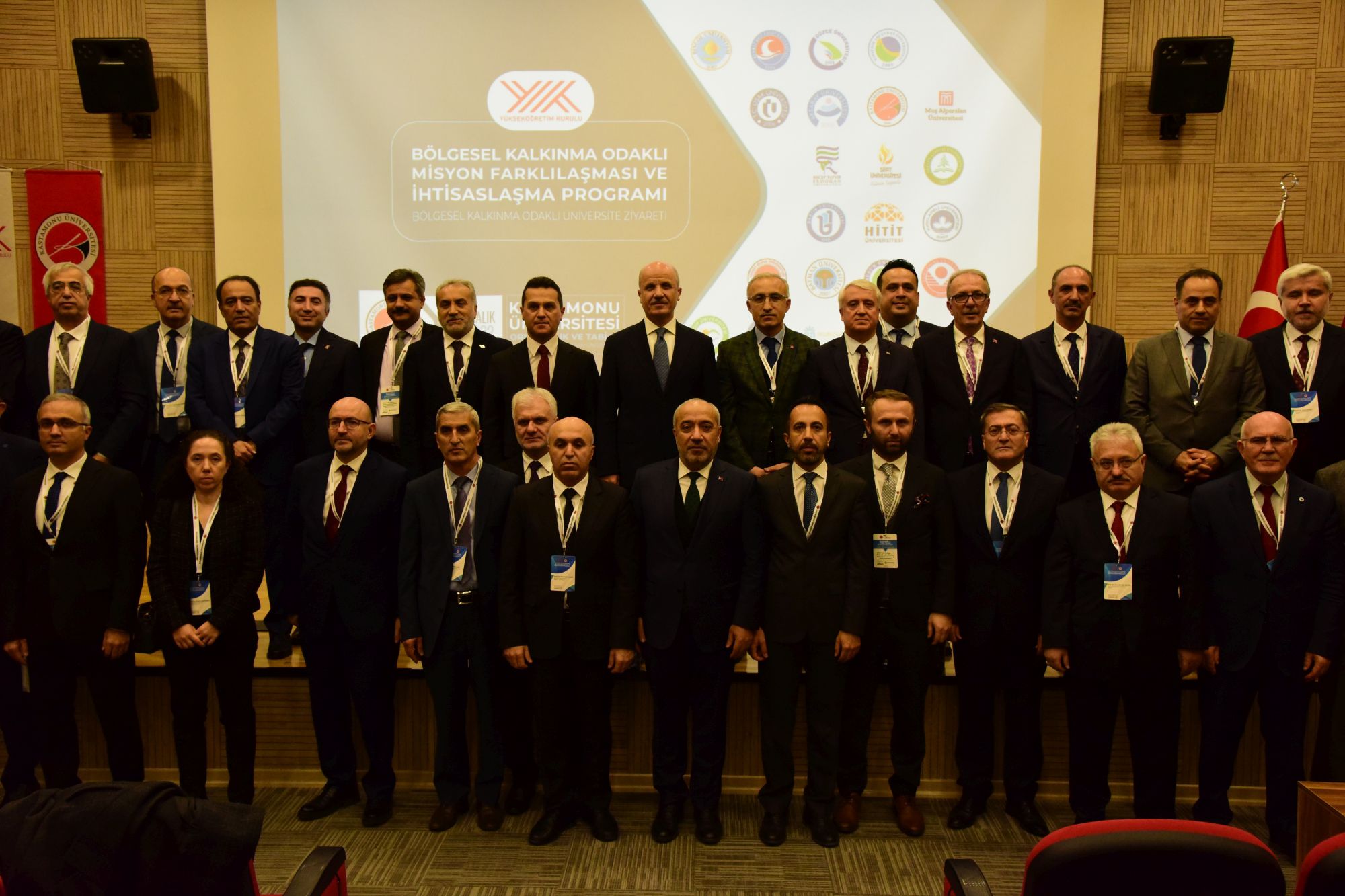 Yükseköğretim Kurulu (YÖK) Başkanı Prof. Dr. Erol Özvar, ihtisas üniversitelerinin rektörleri ve ilgili rektör yardımcılarının katılımlarıyla Kastamonu Üniversitesi ev sahipliğinde “Bölgesel Kalkınma Odaklı Misyon Farklılaşması ve İhtisaslaşma Programı” çerçevesinde “Bölgesel Kalkınma Odaklı Üniversite Ziyareti” programı düzenlendi. Programın açılışına, YÖK Başkanı Prof. Dr. Erol Özvar, YÖK Yürütme Kurulu Üyesi Prof. Dr. Naci Gündoğan ile YÖK Üyesi Prof. Dr. Hüseyin Karaman, Tarım ve Kırsal Kalkınmayı Destekleme Kurumu (TKDK) Başkanı Dr. Muhammet Adak, Kastamonu Üniversitesi Rektörü Prof. Dr. Ahmet Hamdi Topal, ‘Doğal ve Kültürel Miras Turizmi’ alanında ihtisaslaşan Nevşehir Hacı Bektaş Veli Üniversitesi (NEVÜ) adına NEVÜ Rektör Yardımcısı Prof. Dr. Şahlan Öztürk ve İhtisaslaşma Koordinatörü Doç. Dr. Mehmet Cansız, ihtisas üniversitelerinin rektörleri ve ilgili rektör yardımcıları ile kurum müdürleri katıldı.