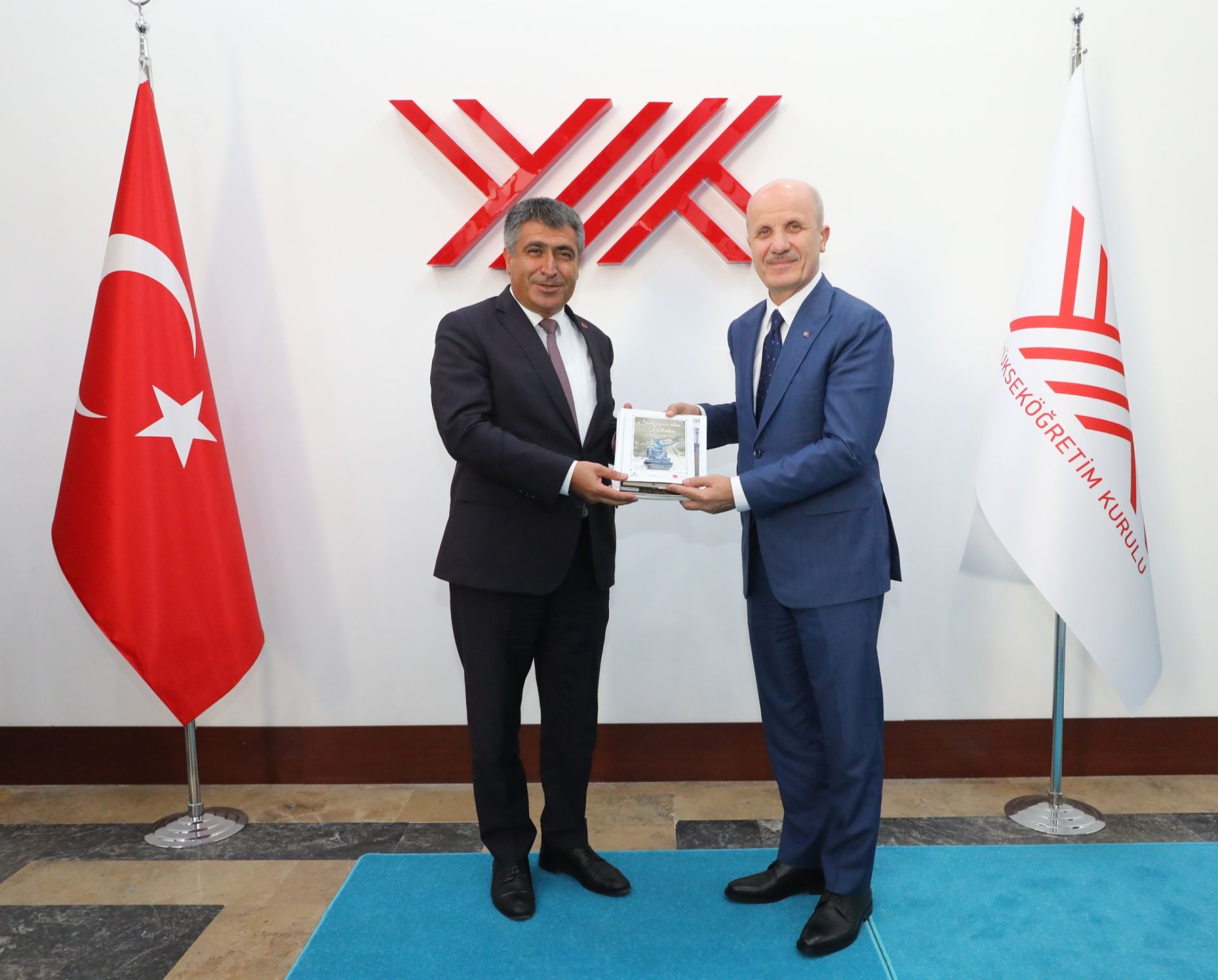 Nevşehir Hacı Bektaş Veli Üniversitesi (NEVÜ) Rektörü Prof. Dr. Semih Aktekin, Cumhurbaşkanı Recep Tayyip Erdoğan’ın tensipleriyle Yükseköğretim Kurulu (YÖK) Başkanlığı görevine yeniden atanan Prof. Dr. Erol Özvar’a hayırlı olsun ziyaretinde bulundu.