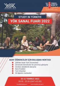 YÖK tarafından, Kovid-19 salgını sürecinde kısıtlanan öğrenci hareketliliğinin olumsuz etkilerini azaltmak ve bu süreçte Türk üniversitelerini yurt dışında dijital ortamlarda da tanıtmak amacıyla ilk olarak 2020 yılında düzenlenen “Study in Türkiye YÖK Sanal Fuarı” nın üçüncüsü bu yıl 20-22 Temmuz 2022 tarihlerinde Türkiye saati ile 08.00-20.00 arasında http://virtualfair-yok.gov.tr web adresi üzerinden gerçekleştirilecek.