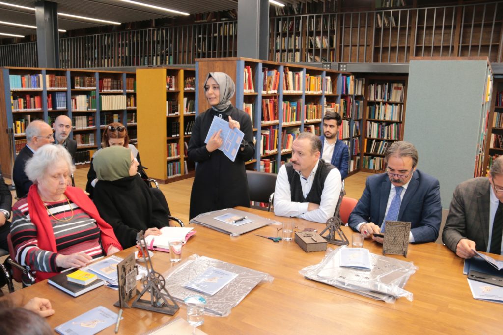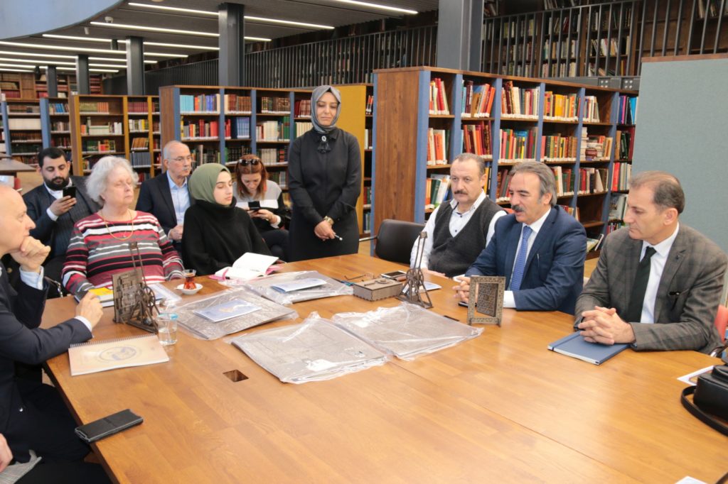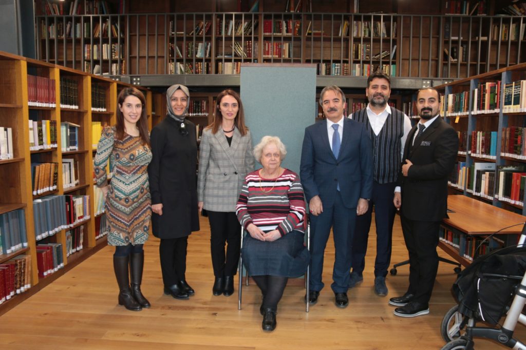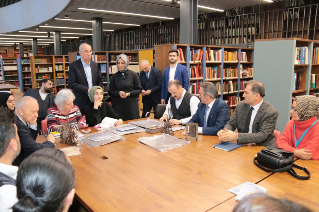 NEVÜ Rektörü Prof. Dr. Mazhar Bağlı ve beraberindeki heyet; Milli Eğitim Bakan Yardımcısı Prof. Dr. Mustafa Safran, Sanayi ve Teknoloji Bakan Yardımcısı Hasan Büyükdede, Prof. Dr. Fuat Sezgin İslam Bilim Tarihi Araştırmaları Vakfı Yönetim Kurulu ve Mütevelli Heyeti Başkanı Mecit Çetinkaya, Prof. Dr. Fuat Sezgin’in eşi Dr. Ursula Elisabeth Sezgin, TRT Genel Müdürü İbrahim Eren,