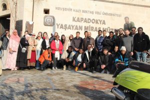 Öğr. Gör. Eyüp Can Ekinci koordinatörlüğünde gerçekleştirilen etkinlikte, dünyanın farklı ülkelerinden gelen öğrenciler hem Türkçe dil becerilerini geliştirme hem de Kapadokya’nın binlerce yıllık kültürel mirasını yerinde tanıma fırsatı buldu. Gezi, öğrencilerin sosyal uyum süreçlerine katkı sağlamasının yanı sıra, akademik öğrenmenin saha deneyimiyle desteklenmesini hedefledi.