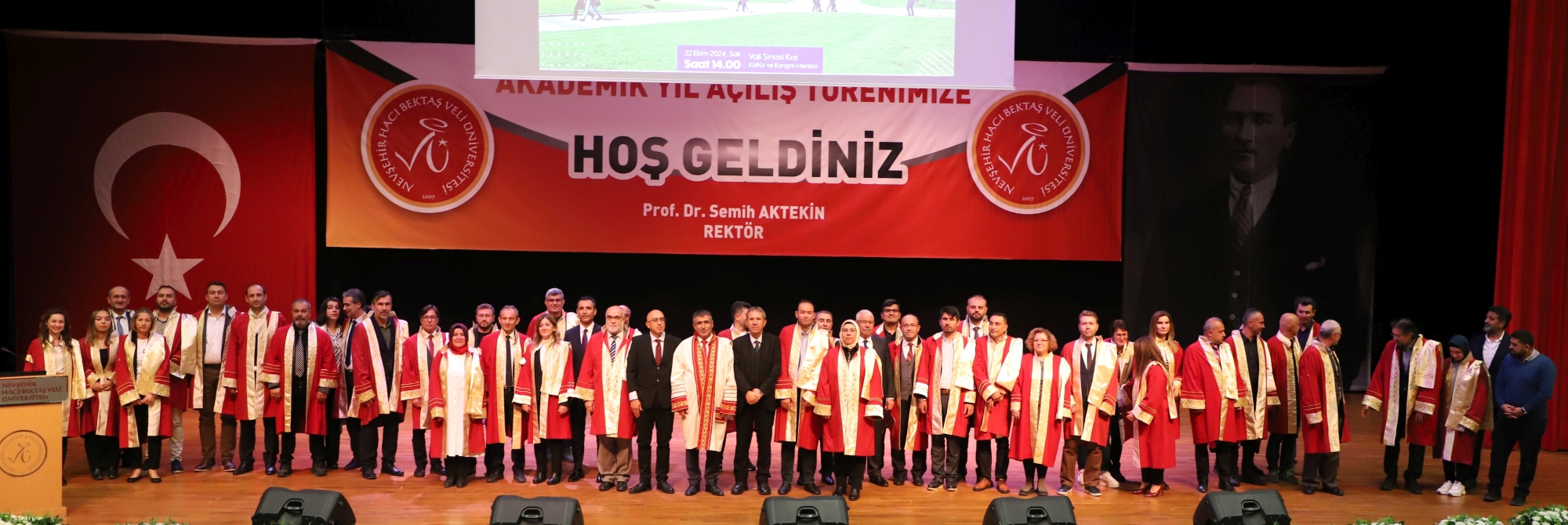 NEVÜ Akademik Yılı Açılış programı, 2024 yılında akademik yükselme göstererek profesör ünvanı alan ve profesör olarak üniversiteye yeni katılan öğretim üyeleri ile akademik yükselme göstererek doçent ünvanı alan öğretim üyelerine cübbelerinin Rektör Prof. Dr. Semih Aktekin tarafından giydirilmesi ve toplu fotoğraf çekimi ile son buldu.