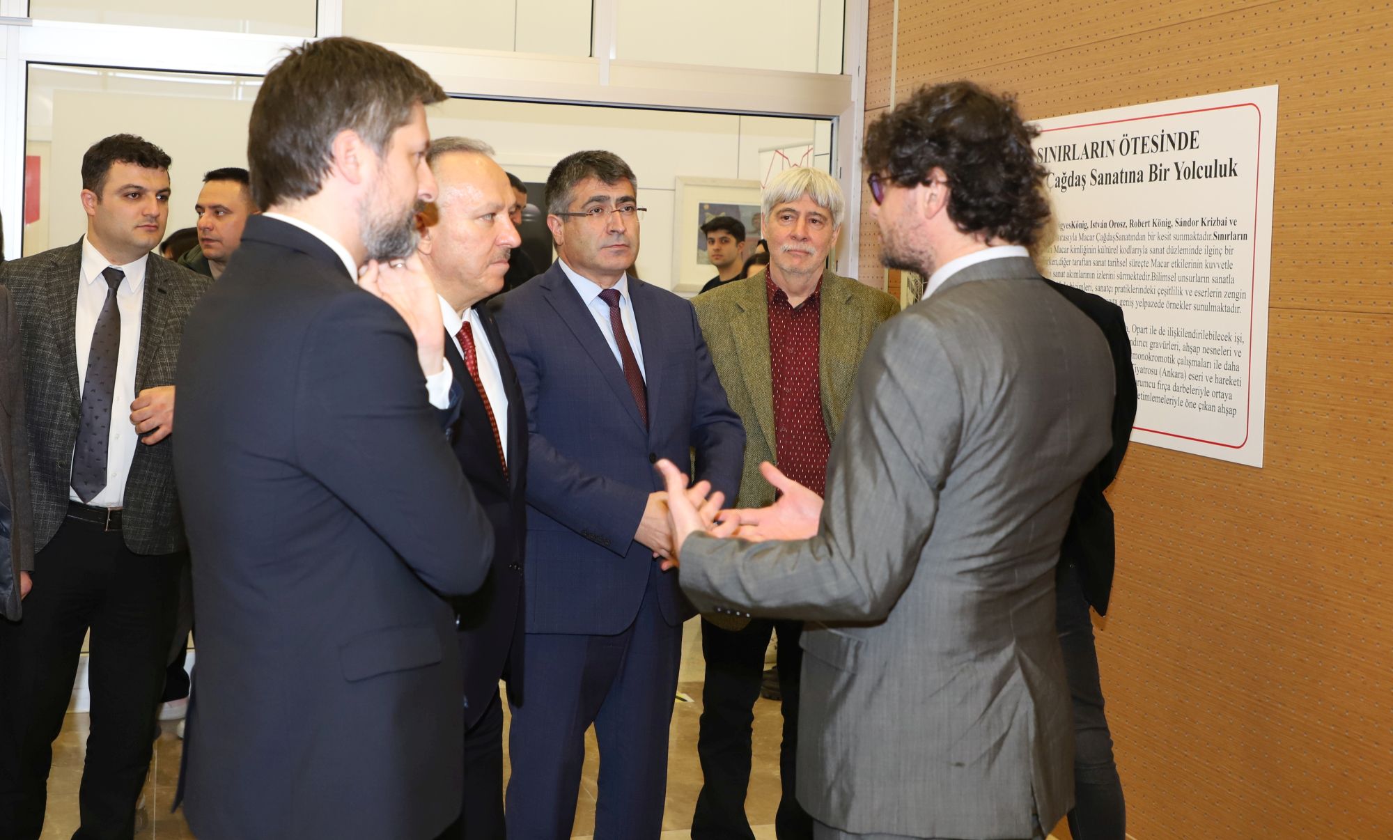 Yapılan konuşmaların ardından NEVÜ Rektörü Prof. Dr. Semih Aktekin, Nevşehir Valisi Ali Fidan, Macaristan Ankara Büyükelçisi Viktor Matis, katılımcılar ile birlikte Macaristan’ın önde gelen çağdaş sanatçılarından Frigyes König, İstvan Orosz, Robert König, Sandor Krizbai ve Tamas Konak’ın farklı disiplinlerden Anamorfoz tasarım- Resim – Baskıresim – Enstalasyon gibi yaklaşık 50 eserinin yer aldığı ”Sınırların Ötesinde Macar Çağdaş Sanatına Bir Yolculuk” konulu serginin açılışını gerçekleştirdi.