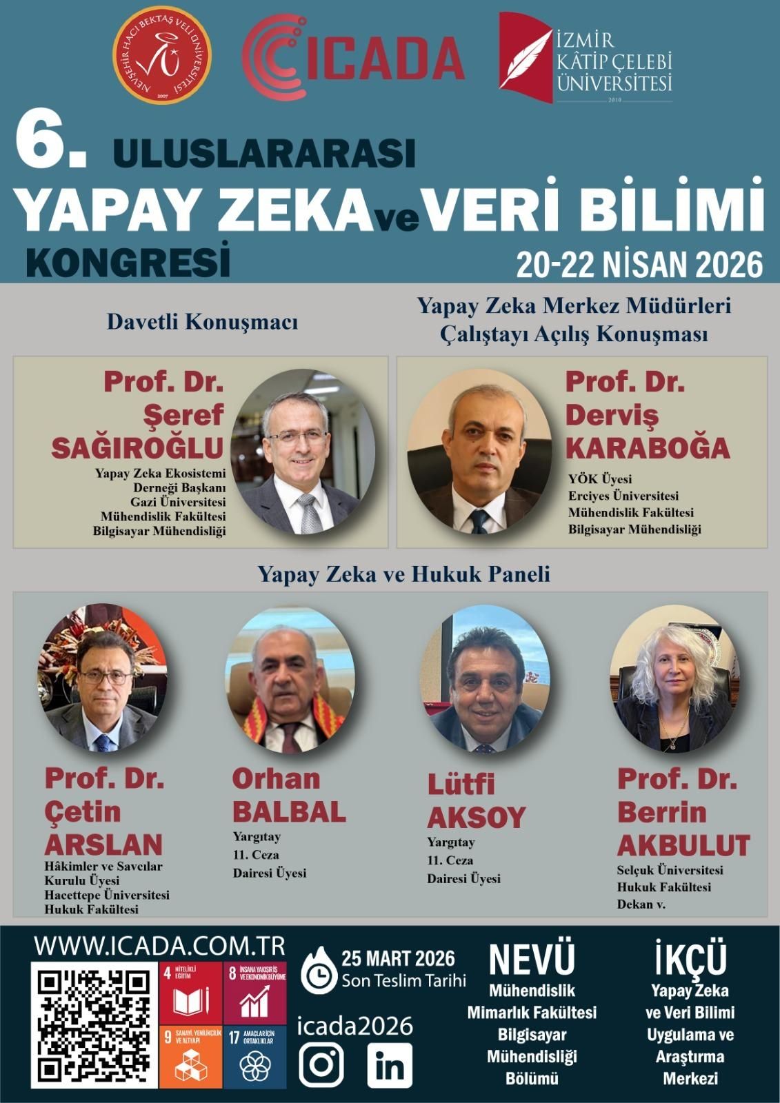 Nevşehir Hacı Bektaş Veli Üniversitesi (NEVÜ)’de bilim, teknoloji ve hukuk alanlarını aynı çatı altında buluşturan “6. Uluslararası Yapay Zeka ve Veri Bilimi Kongresi (ICADA 2026)” düzenlenecek.