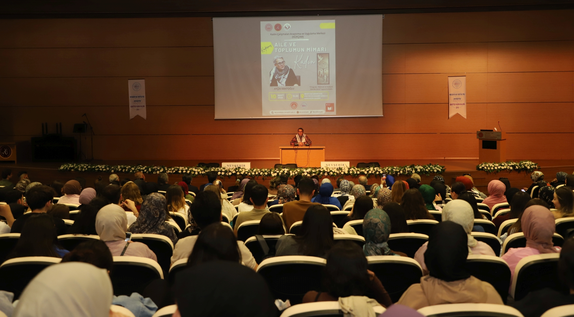 Nevşehir Hacı Bektaş Veli Üniversitesi (NEVÜ), Cumhurbaşkanı Recep Tayyip Erdoğan’ın 2025’i “Aile Yılı” ilan etmesi ve 8 Mart Dünya Kadınlar Günü kapsamında “Aile ve Toplumun Mimarı Kadın” konulu bir konferans düzenledi.