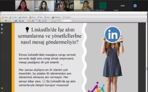 İnsan Kaynakları Uzmanı Meltem Karagöz Akhisar’ın eğitimci olarak katıldığı programda, geleceğin dijital CV’si LinkedIn’in kullanımı ve sektörde önemi üzerinde duruldu.