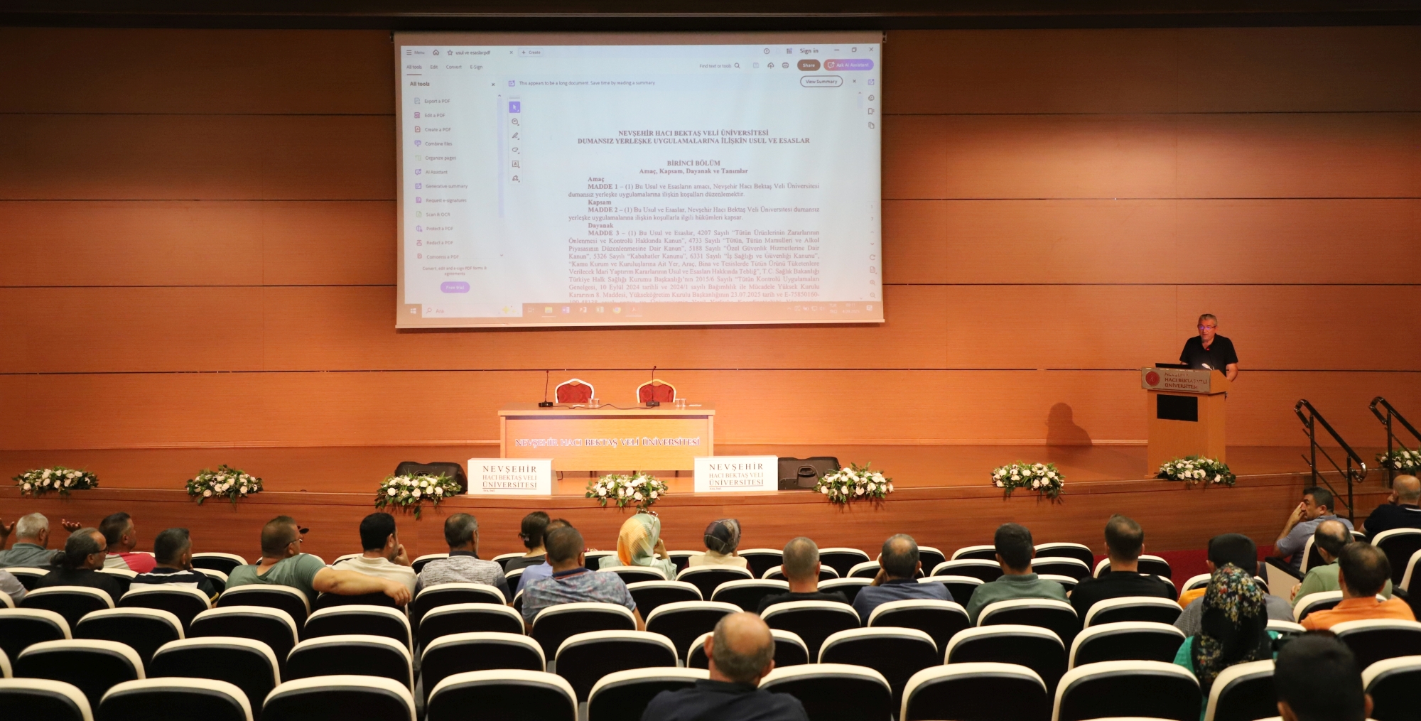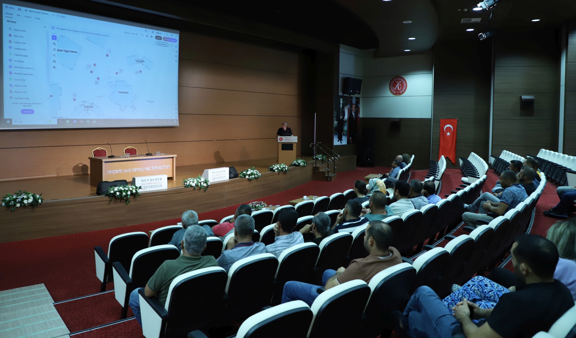 NEVÜ Vali Şinasi Kuş Kültür ve Kongre Merkezi’nde yaklaşık bir saat süren programda, destek personeline Yeşil Yerleşke Koordinatörlüğü’nün yapısı, görev ve sorumlulukları hakkında bilgi verildi. Eğitimde ayrıca “Dumansız Yerleşke Usul ve Esasları” ele alınarak uygulamanın önemi, dikkat edilmesi gereken hususlar, uygulama alanları ve sahada karşılaşılabilecek durumlara ilişkin bilgilendirmeler yapıldı.