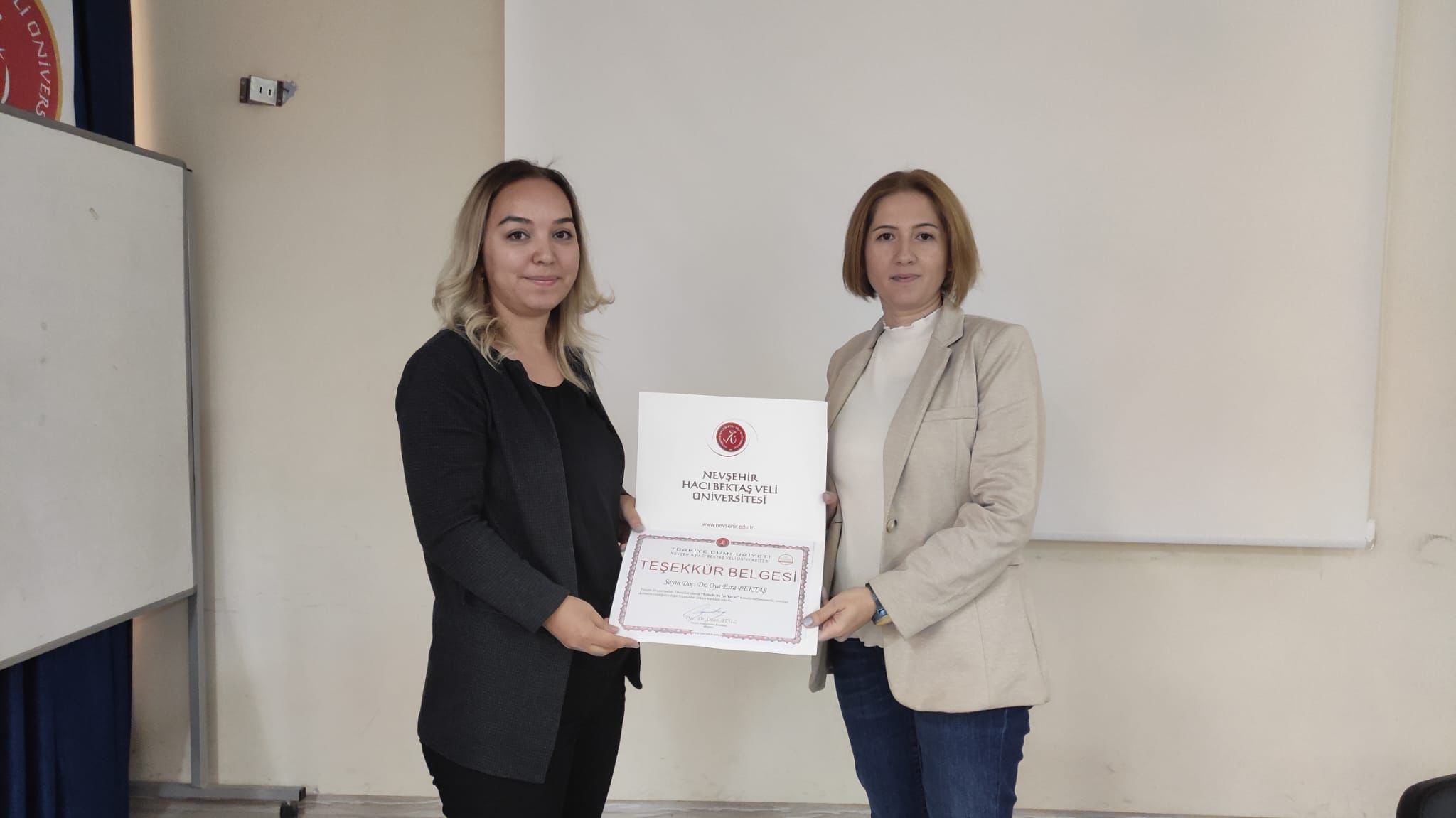 Konferans, Doç. Dr. Oya Esra Bektaş’a katılımı ve katkılarından dolayı teşekkür belgesi takdim edilmesiyle sonlandı.