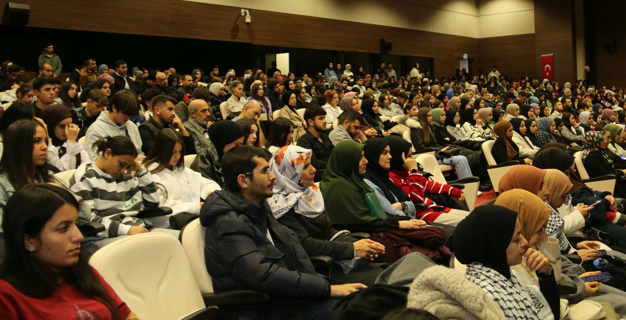 Panel öncesi İsrail saldırısında hayatını kaybeden tüm Filistinli şehitler için İlahiyat Fakültesi Öğr. Gör. Muhammed Yusuf Küçük tarafından Kur’an-ı Kerim tilaveti okunarak, dualar edildi.