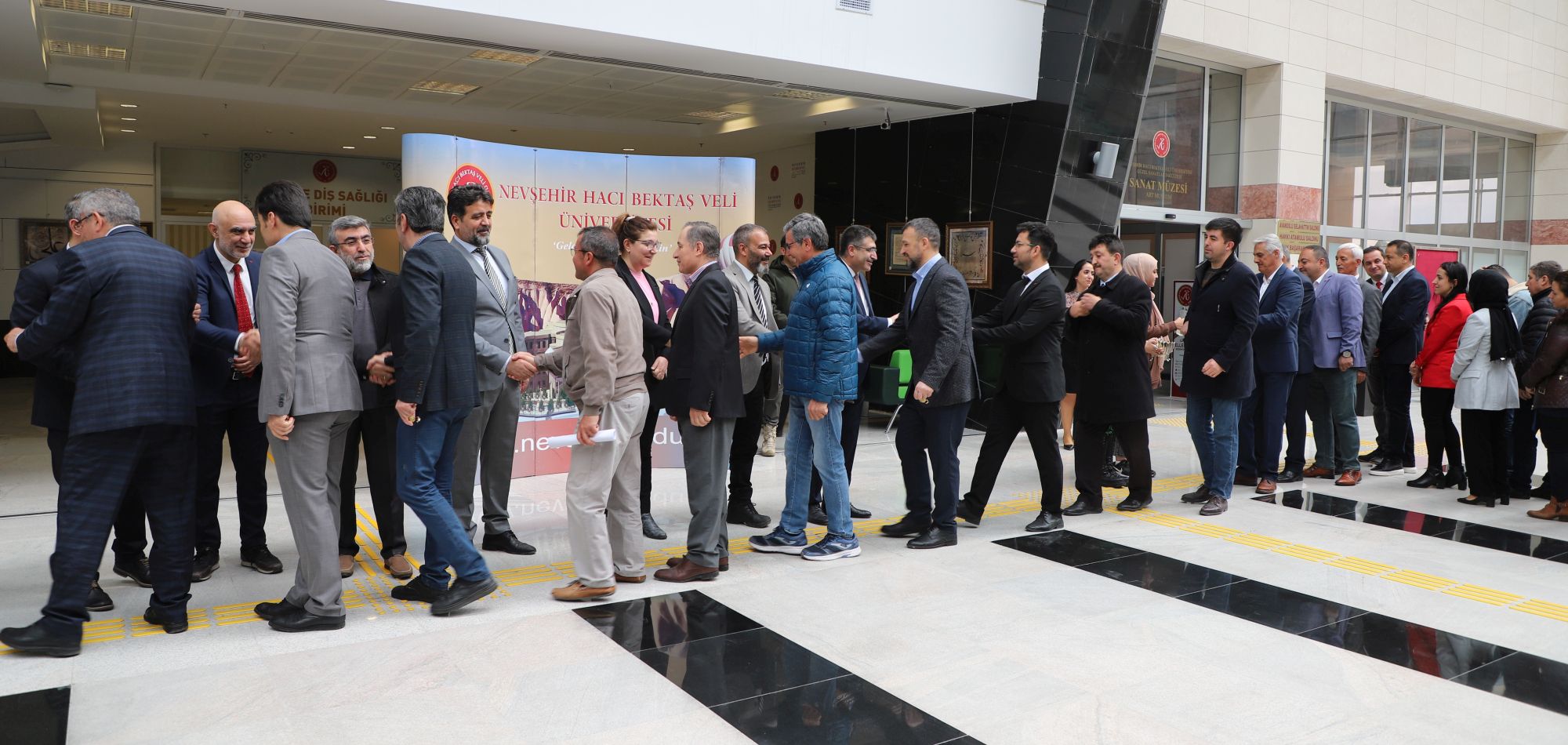 Nevşehir Hacı Bektaş Veli Üniversitesi (NEVÜ) Rektörü Prof. Dr. Semih Aktekin’in katılımlarıyla NEVÜ Vali Şinasi Kuş Kültür ve Kongre Merkezin Fuaye Alanı’nda gerçekleştirilen törene; Rektör Yardımcıları Prof. Dr. Özlem Fındık ve Prof. Dr. Şahlan Öztürk, Genel Sekreter Nihat Çavuşoğlu, fakülte dekanları, enstitü ve yüksekokul müdürleri, daire başkanları ile akademik ve idari personel katıldı.