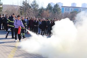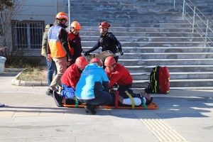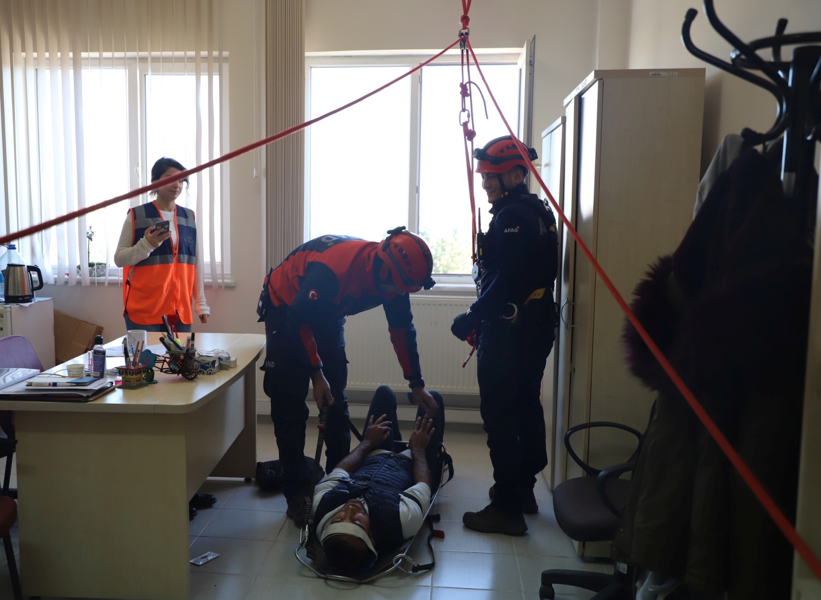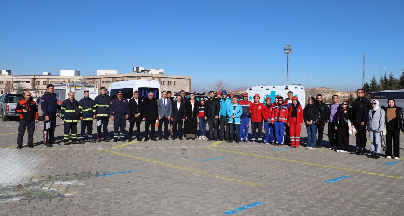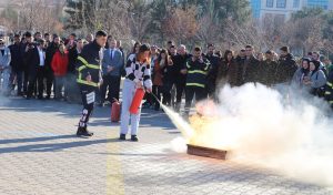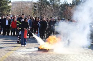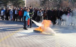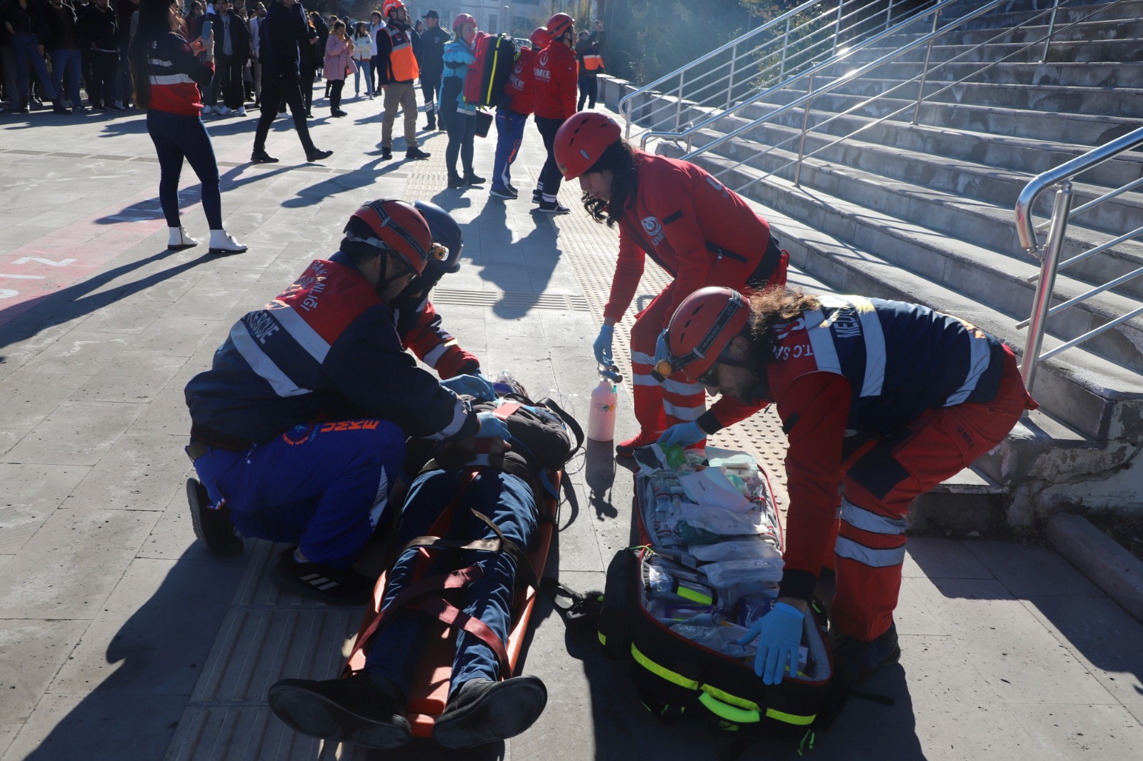 Mühendislik- Mimarlık Fakülte binasında olası yangın, tahliye ve yaralı kurtarma tatbikatı, merkez büyük otopark alanında ise yangın söndürme eğitimi gerçekleştirildi. Tatbikatta, binada mahsur bulunan kişiler, AFAD, itfaiye ve UMKE ekipleri tarafından kurtarılarak sağlık kuruluşlarına sevk edildi. Ayrıca olası bir yangın durumunda yapılması gerekenler ve yangın ekipmanlarının doğru kullanımı hakkında bilgilendirilen personel ve öğrenciler, daha sonra alandaki yangını gerekli yangın ekipmanlarıyla söndürdü.