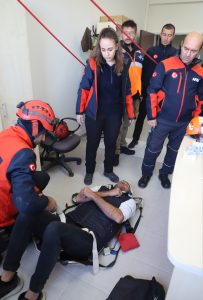 Nevşehir Hacı Bektaş Veli (NEVÜ) Rektörlüğü, Sivil Savunma Birimi, İş Sağlığı ve Güvenliği Koordinatörlüğü, Nevşehir Belediyesi İtfaiye Müdürlüğü, Nevşehir İl Sağlık Müdürlüğü, Ulusal Medikal Kurtarma Ekibi (UMKE) ve Afet ve Acil Durum Yönetimi Başkanlığı (AFAD) iş birliğinde NEVÜ Damat İbrahim Paşa Yerleşkesi Mühendislik Mimarlık Fakültesinde acil durum plan uygulaması ve yangın tatbikatı gerçekleştirildi. Tatbikata; NEVÜ Rektör Yardımcısı Prof. Dr. Özlem Fındık, NEVÜ Mühendislik Mimarlık Fakültesi Dekanı Prof. Dr. Ersan Kabalcı, NEVÜ Genel Sekreter Yardımcısı Bünyamin Ergen, NEVÜ Sivil Savunma Birim Amiri Bayram Kaya, üniversitenin akademik ve idari personeli ile öğrenciler katıldı.