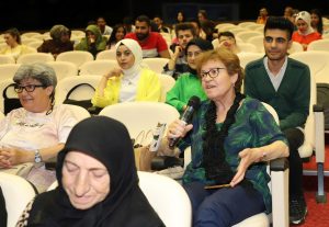 Panel bölümünde ‘’Sağlık ve Aktif Yaşlanma Örneği: İki Kuşak Bir Arada Üniversite Eğitiminde” projesinin yürütücüsü olan Sağlık Hizmetleri Meslek Yüksekokulu (SHMYO) Yaşlı Bakım Programı öğrencisi Hatice Kodaş ve Proje katılımcısı olan Avanos ilçesinden Munise Deniz ile birlikte birer konuşma gerçekleştirdiler.