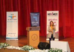 Katılımcılara kendi akademik kariyer deneyimlerini aktararak örnekler veren NÜKMER Müdürü Doç. Dr. Zehra Turan, “Biz NÜKMER olarak Aralık 2018’den beri faaliyette olan bir birimiz. Kariyer merkezi öğrencilerin kariyer gelişimiyle ilgilenir. Biz Cumhurbaşkanlığı insan kaynakları Ofisine bağlı olarak çalışıyoruz. Bundan sonra iş ve staj alımları hep oradan yapılacak. Buradan çıkınca sizden Yetenek Kapısı’na üye olmanızı isteyeceğim. Yetenek Kapısı, iş ilanlarının staj ilanlarını işverenle mezunu buluşturan bir ortam. Özgeçmişiniz oraya kayıtlı oluyor. Örneğin Staj seferberliği, bunu kaç kişi duydu? Ocak ayında devam edecek. Yaz döneminde istediğiniz takdirde staj yapabilirsiniz.