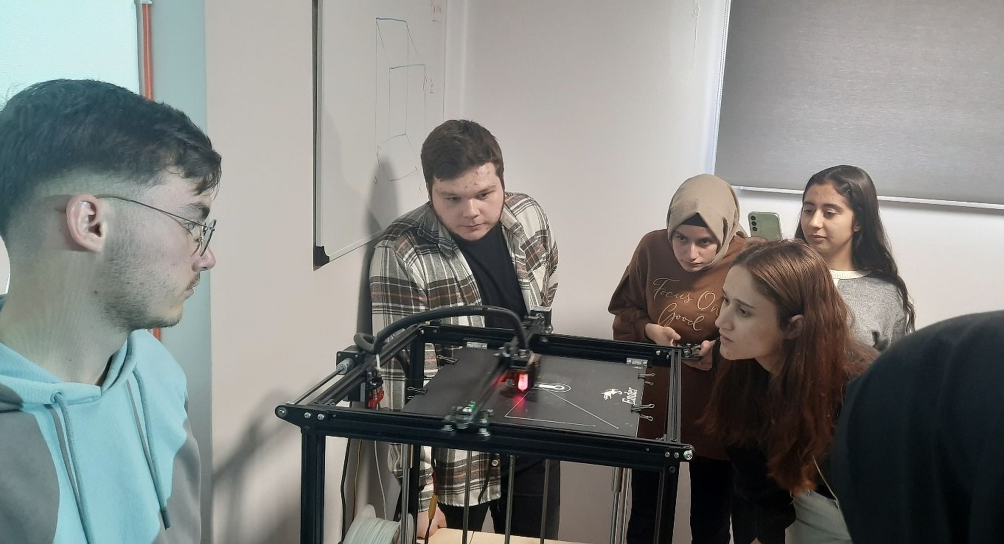 Lisans öğrencilerinde modern teknolojinin imkanı olan 3 boyutlu yazıcıların etkili kullanımı konusunda düzenlenen eğitim, iki oturum halinde verildi. İlk oturumda katmanlı imalat süreci, filament, dilimleme yazılımı ile baskı, tasarım, tasarım süreci, tasarımın yazdırmaya uygun hale getirilmesi, üretim parametrelerinin tayini ve 3 boyutlu yazıcının eğitime yansımaları teorik açıdan ele alındı. İkinci oturumda ise baskı alınma süreçleri uygulamalı olarak ele alınarak örnek bir baskı uygulaması gerçekleştirildi.
