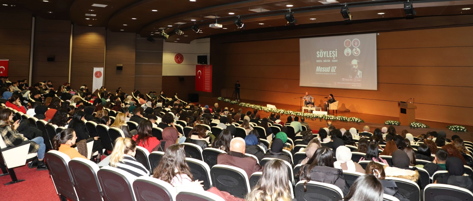 Moderatörlüğünü Türk Halkbilimi Bölümü Başkanı ve NEVKAM Müdürü Prof. Dr. Adem Öger’in yaptığı söyleşi programına davetli konuşmacı olarak katılan Ses Sanatçısı ve Oyuncu Mesud Uz, belgesel film, Türk ve dünya sinema sektörü, içerik endüstrisi üretimi ve seslendirme oyunculuğu ana başlıklarını değerlendirilerek öğrencilerle sohbet etti.