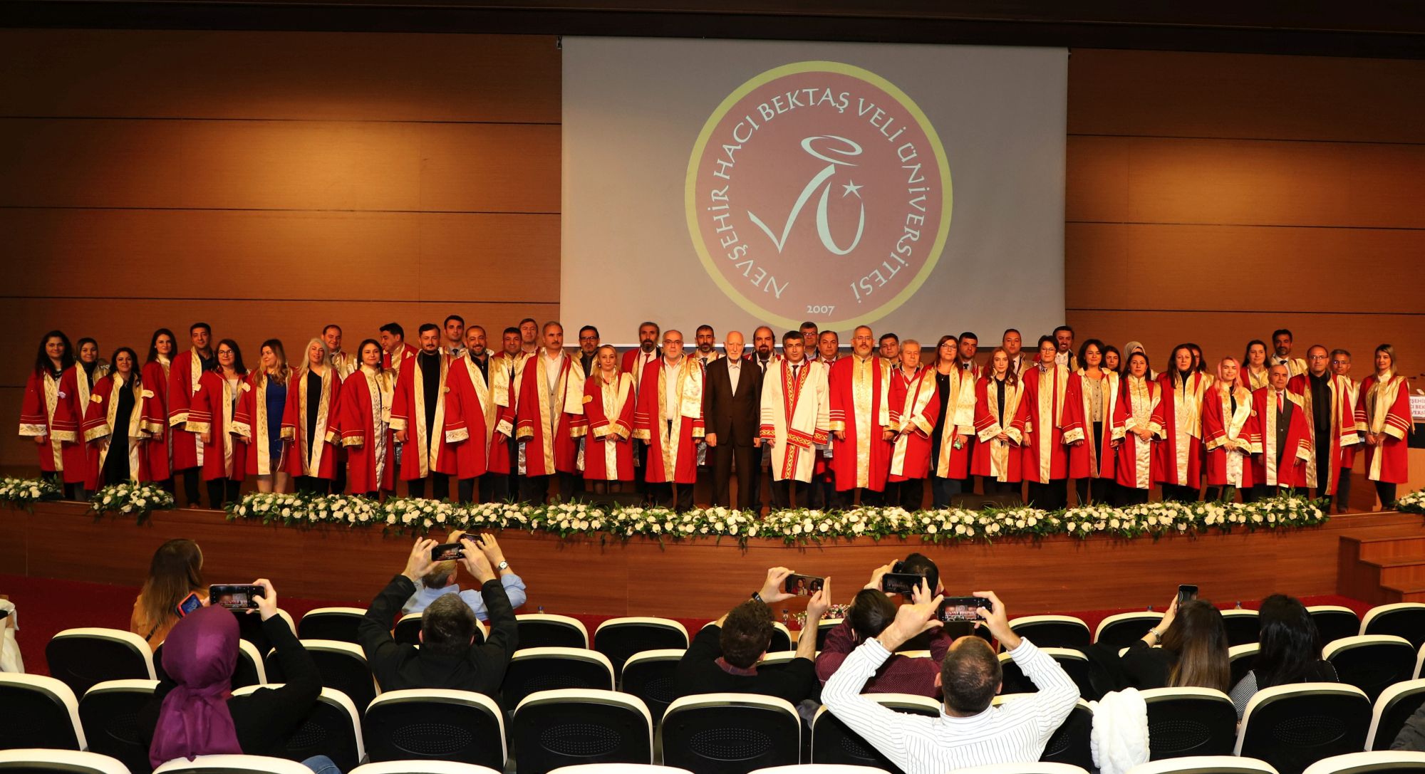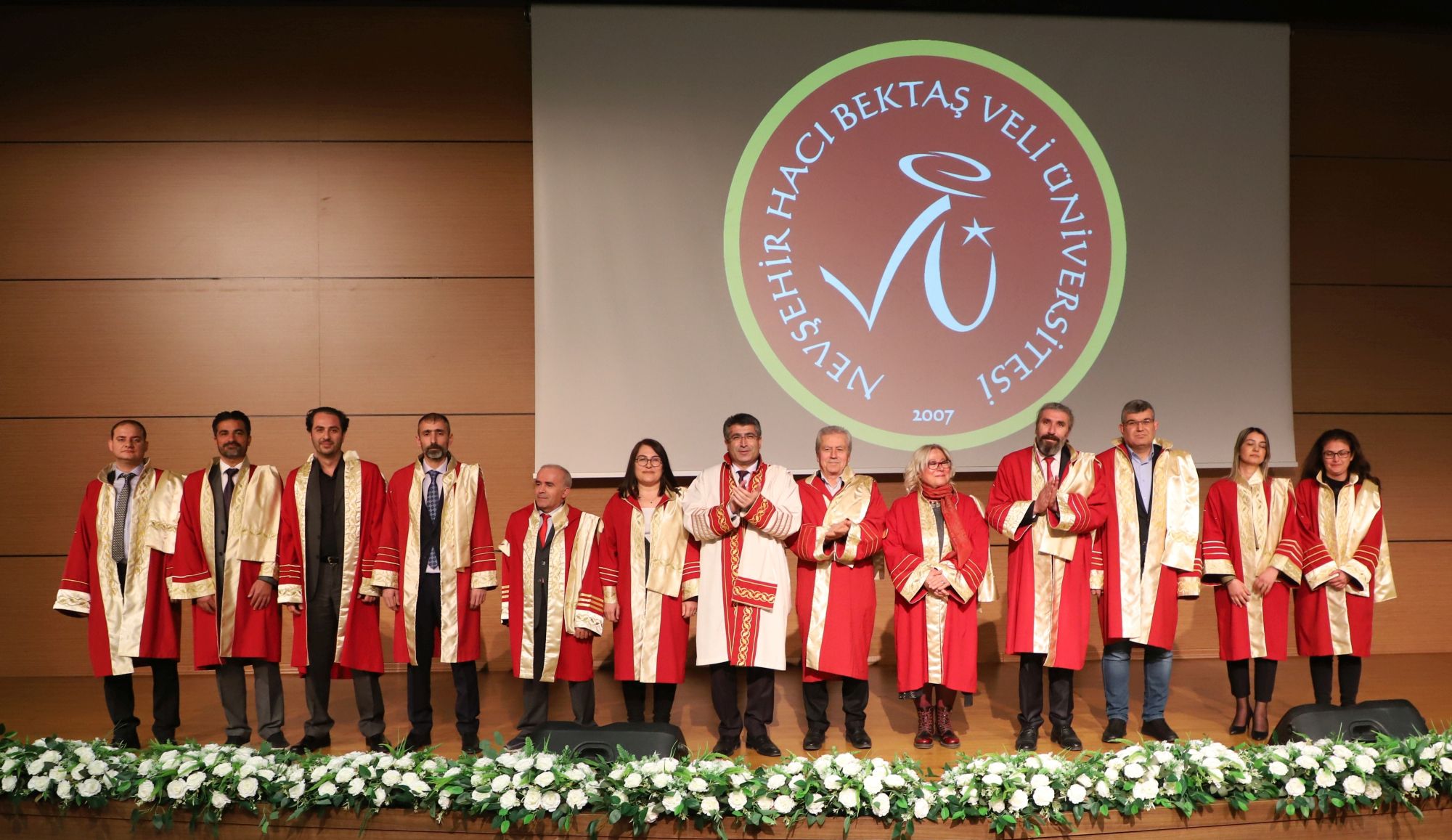 Nevşehir Hacı Bektaş Veli Üniversitesi (NEVÜ)’de 2023-2024 yılları arasında profesör ve doçent ünvanı alan öğretim üyeleri için cübbe giydirme töreni düzenlendi.