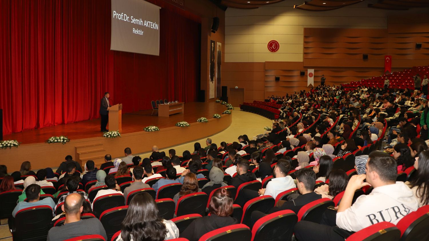 Sizler Türkiye’nin 81 ilinden ve dünyanın 54 farklı ülkesinden nitelikli akademik kadrosu, güçlü bir fiziki yapısı olan ve tercih edilirlikte ülkemizin sayılı üniversiteleri arasında yer alan üniversitemizi tercih ederek aramıza katıldınız. Bizler de sizlerin eğitimlerinizi en iyi şekilde tamamlayarak ülkemizle birlikte tüm insanlığa faydalı birer birey olarak yetişmeniz için tüm imkânlarımızla buradayız” dedi.