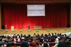 Nevşehir Hacı Bektaş Veli Üniversitesi (NEVÜ)’nün sahip olduğu nitelikli akademik kadrosu ve güçlü fiziki altyapısıyla tercih edilirlikte ülkenin sayılı üniversiteleri arasında yer aldığına değinen Rektör Prof. Dr. Semih Aktekin, öğrencilere eğitimleri süresince sadece okul ile değil, yaşadıkları çevreyi ve sosyo-kültürel özelliklerini de tanıyarak kendi gelişimlerine önem vermelerini söyledi.