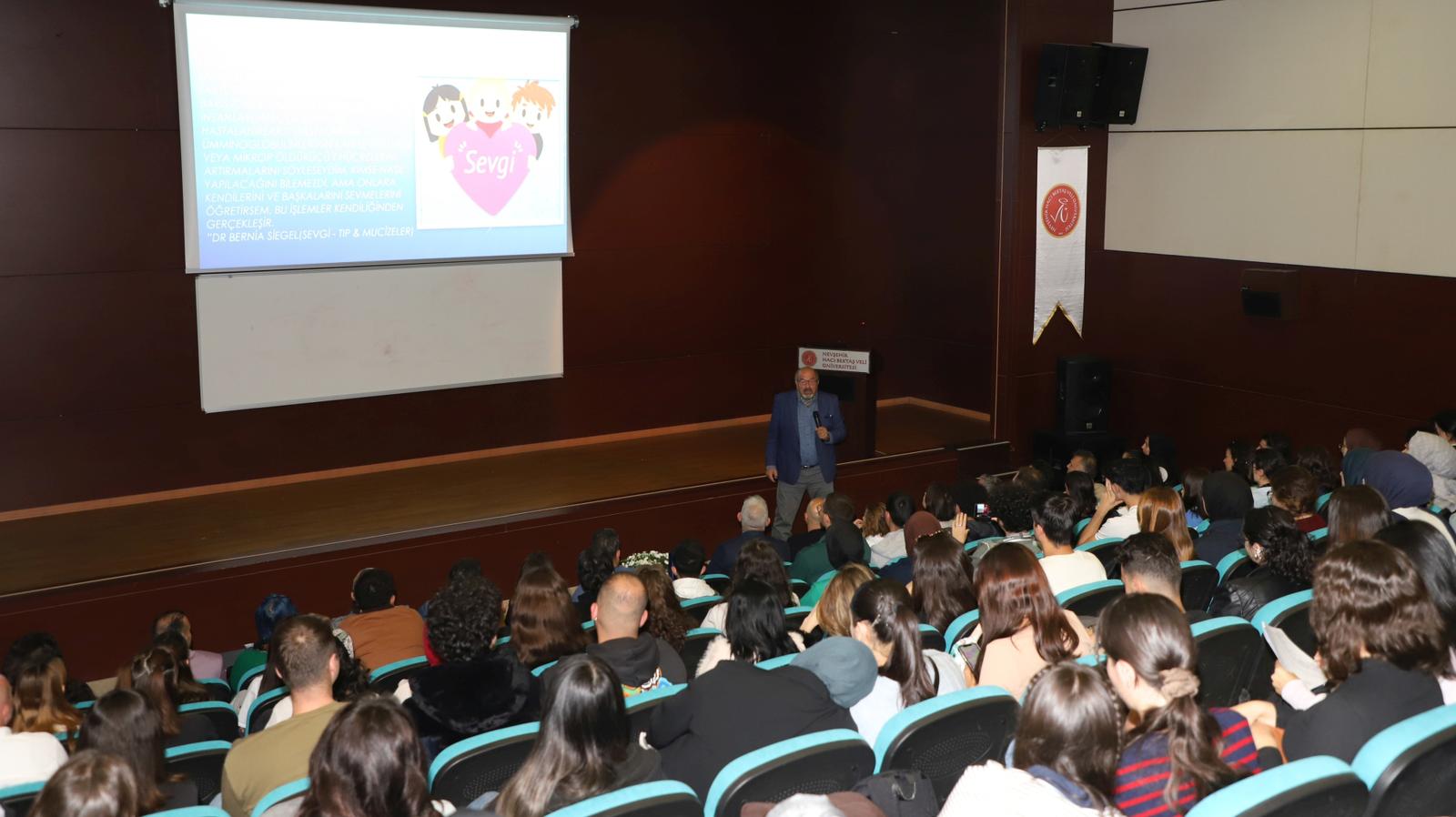 Nevşehir Hacı Bektaş Veli Üniversitesi (NEVÜ) Arkeoloji, Sanat Tarihi ve Antropoloji Topluluğu, Felsefe Kulübü ve Psikoloji Kulübü iş birliğiyle “Sevginin Anatomisi” konulu seminer düzenlendi. Seminere Ankara Üniversitesi Tıp Fakültesi Anatomi Anabilim Dalı Öğretim Üyesi Prof. Dr. İbrahim Tekdemir konuşmacı olarak katıldı.