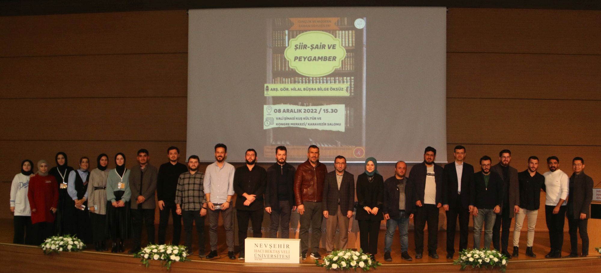 Nevşehir Hacı Bektaş Veli Üniversitesi (NEVÜ) İlahiyat Fakültesi Kapadokya İrfan Kulübü bünyesinde gerçekleştirilen on programlık “Gençlik ve Modern Zamanlar” başlıklı seminer/söyleşi program dizisinin sekizinci etkinliği, “Şiir-Şair ve Peygamber” konulu söyleşi programı olarak gerçekleştirildi.