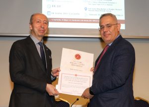 Etkinliğin ikinci bölümünde konuşan Doç. Dr. Emin Özdamar ise akademik ve mesleki kariyer yolculuğundan hareketle, uluslararası kuruluşlarda çalışmanın gerektirdiği niteliklere ve sürecin zorluklarına değindi. Japonya’da aldığı eğitim ve JICA bünyesinde yürüttüğü projeler üzerinden deneyimlerini paylaşan Özdamar, özellikle afet risk azaltma alanında disiplinler arası çalışmanın ve saha tecrübesinin önemine vurgu yaptı. Öğrencilere yönelik değerlendirmelerinde; yabancı dil yeterliliği, kültürler arası iletişim becerisi, gönüllülük faaliyetleri ve uzun vadeli hedef belirlemenin uluslararası kariyer yolculuğunda belirleyici unsurlar olduğuna dikkat çekti. Toplumsal fayda odaklı projelerde yer almanın, bireysel gelişimin yanı sıra küresel sorunlara duyarlılık kazandırdığını ifade etti.