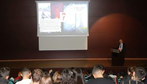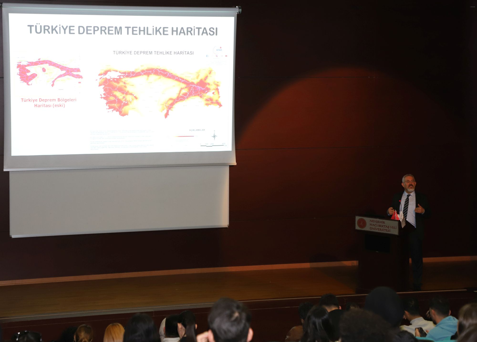 NEVÜ Vali Şinasi Kuş Kültür ve Kongre Merkezi Gülşehri Konferans Salonu’nda NEVÜ Rektör Yardımcısı ve Mühendislik-Mimarlık Fakültesi Jeoloji Mühendisi Bölümü öğretim üyesi Prof. Dr. Mutluhan Akın’ın konuşmacı olarak yer aldığı konferansa; NEVÜ Genel Sekreteri Nihat Çavuşoğlu, Fen Edebiyat Fakültesi Coğrafya Bölümü Başkanı Prof. Dr. Şenay Güngör, AFAD Nevşehir İl Müdürlüğü personelleri, üniversitenin akademik ve idari personeli ile öğrenciler katıldı.