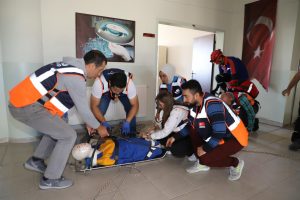 Nevşehir Hacı Bektaş Veli Üniversitesi (NEVÜ) Sivil Savunma Birimi ve İş Sağlığı ve Güvenliği Koordinatörlüğü yönetiminde, Afet ve Acil Durum Yönetimi Başkanlığı (AFAD) Nevşehir İl Müdürlüğü ve Nevşehir Belediyesi İtfaiye Müdürlüğü’nün desteği ile Damat İbrahim Paşa Yerleşkesi’nde acil durum tatbikatı yapıldı.