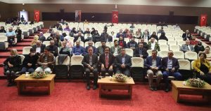Konferansın sonunda Rektör Prof. Dr. Semih Aktekin, Prof. Dr. Halis Aydemir’e teşekkür belgesi ve plaket takdim etti.